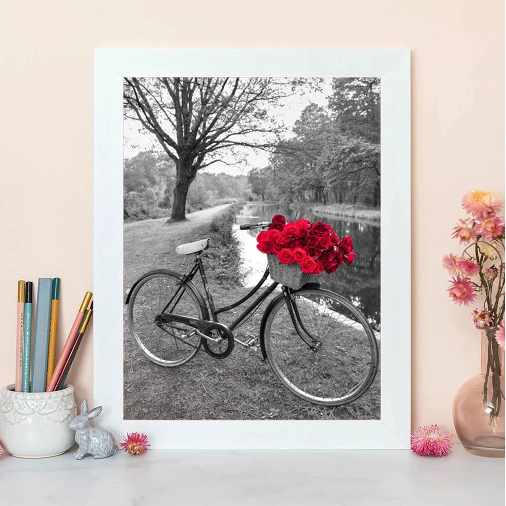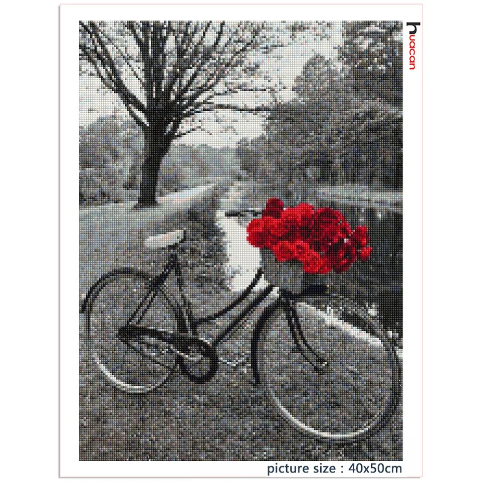 Алмазная живопись Huacan, мозаика черного и белого цветов с вышивкой, для украшения дома, велосипеда