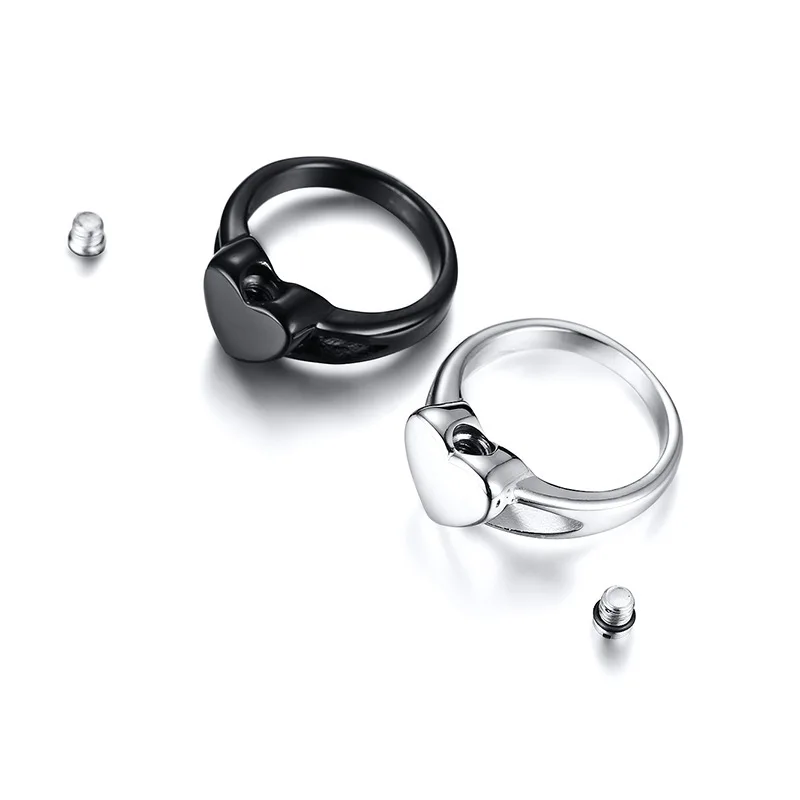 Кольцо с урной для праха, из нержавеющей стали, черное сердечко Кре...