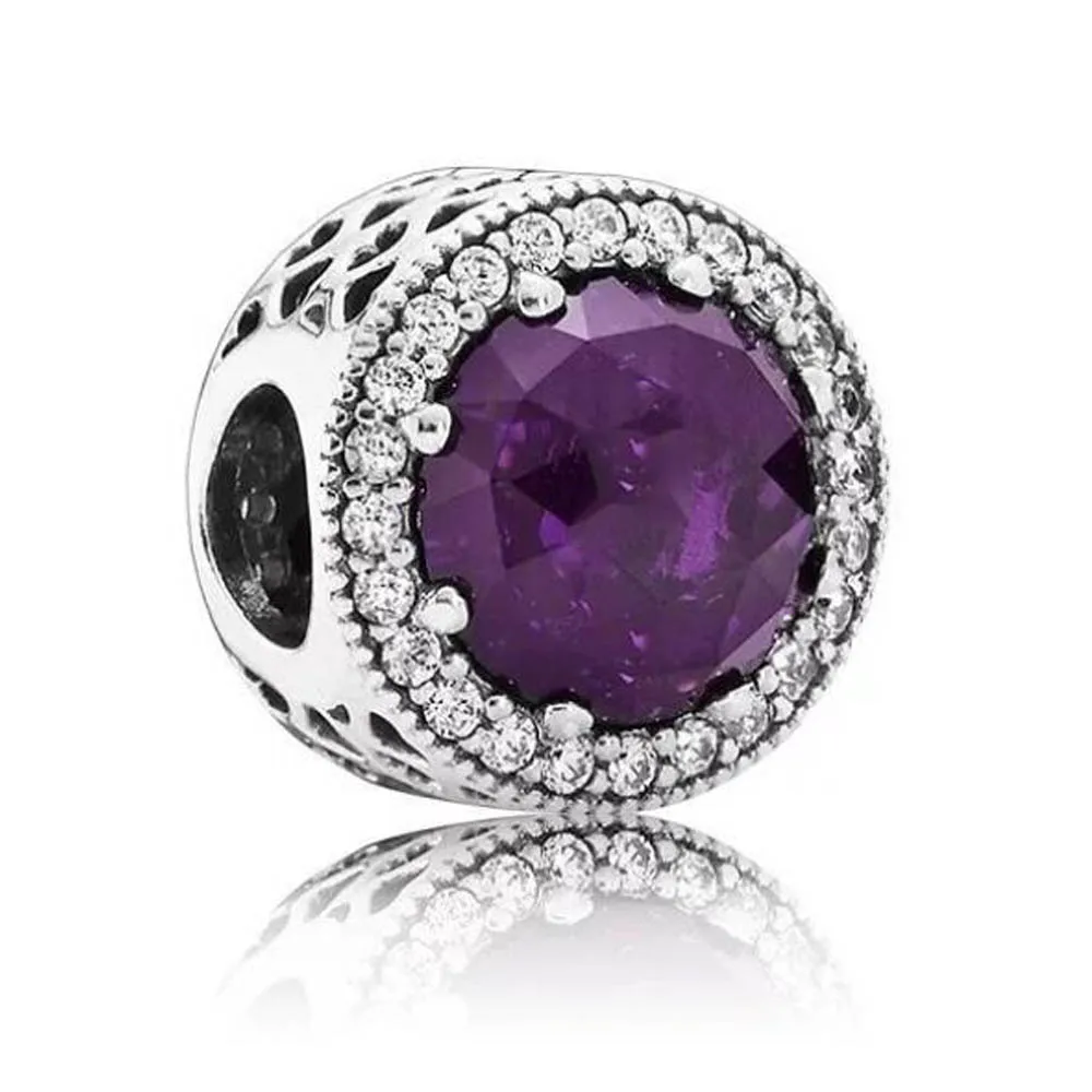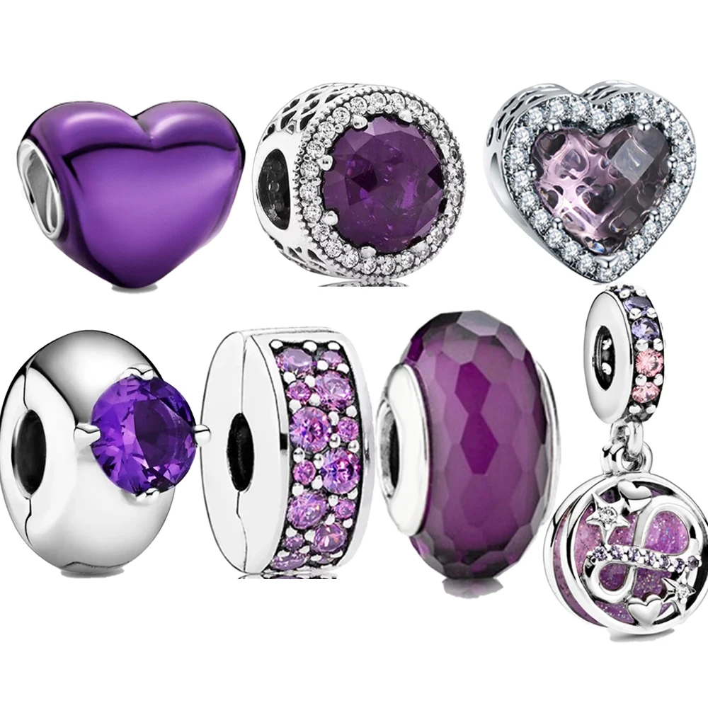 Подвеска для браслета Pandora 3 мм, настоящий серебристый, фиолетовый, эмалированный, фуксия, со сверкающими звездами