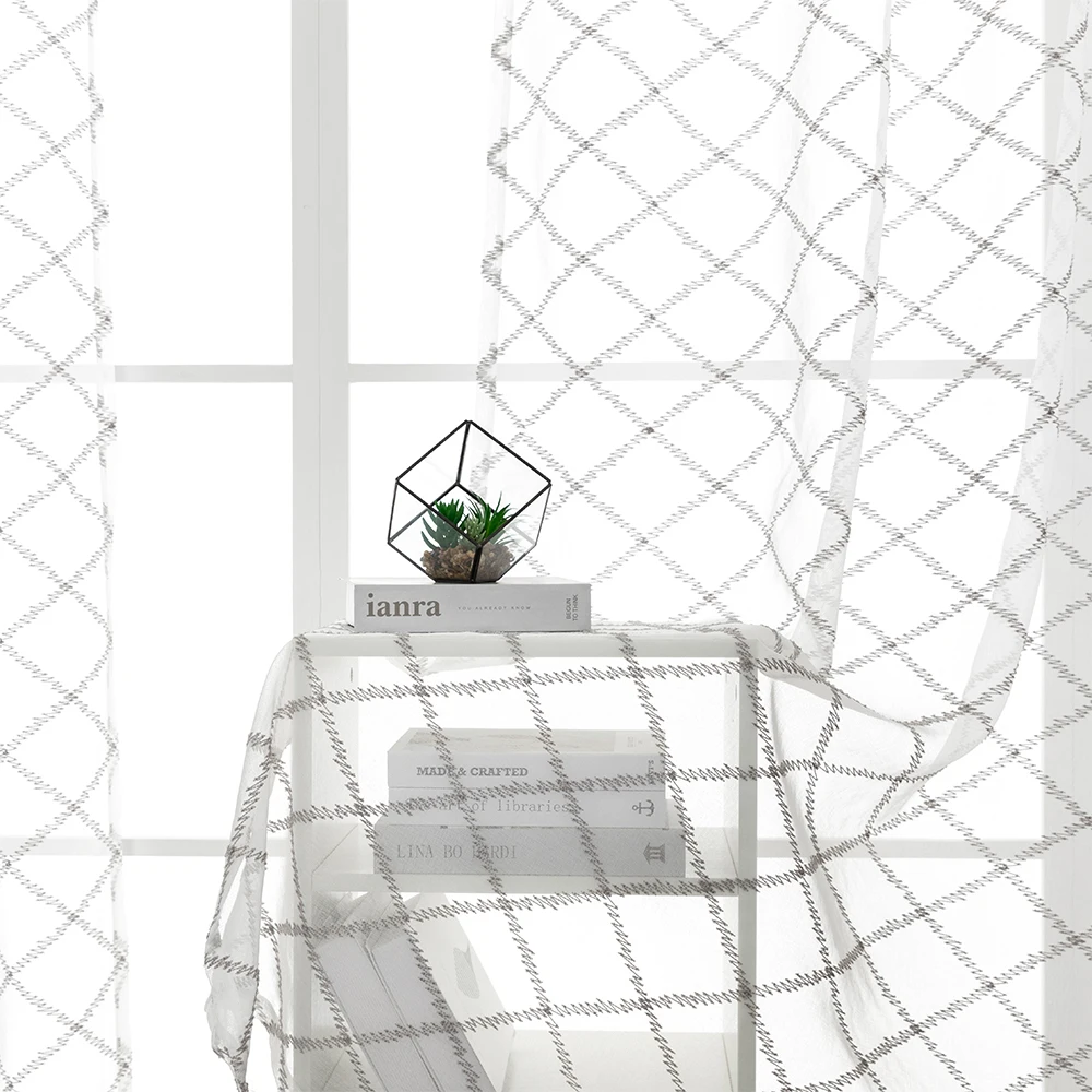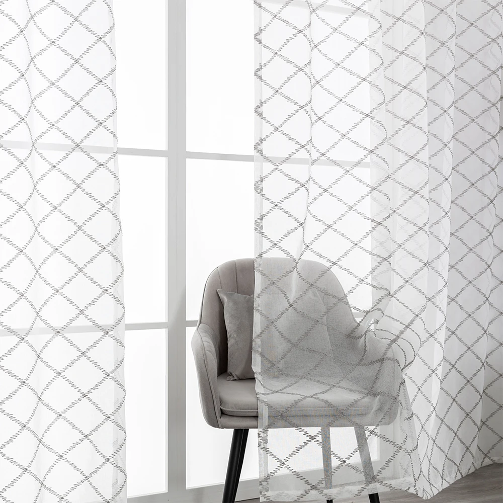 Шторы TPS из белого тюля, прозрачные Занавески в квадратную клетку,...