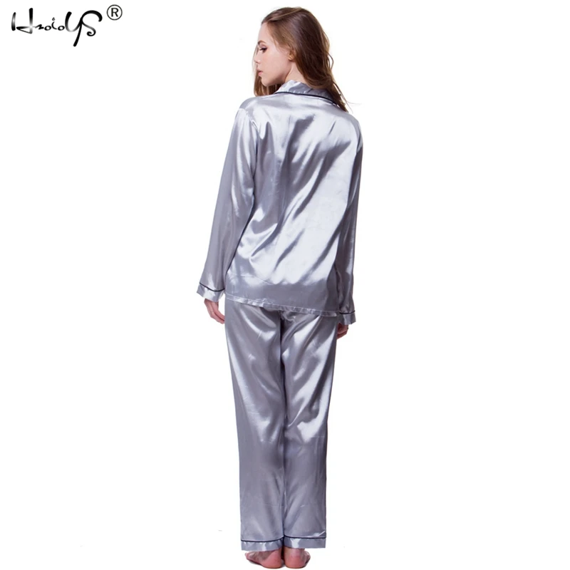 Женская атласная пижама, Осень-зима 2021, Женский Пижамный костюм, однотонный простой атласный пеньюар, повседневный комплект из двух предметов