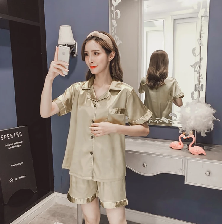 Новинка, женская шелковая атласная пижама, пижамный комплект, одежд...