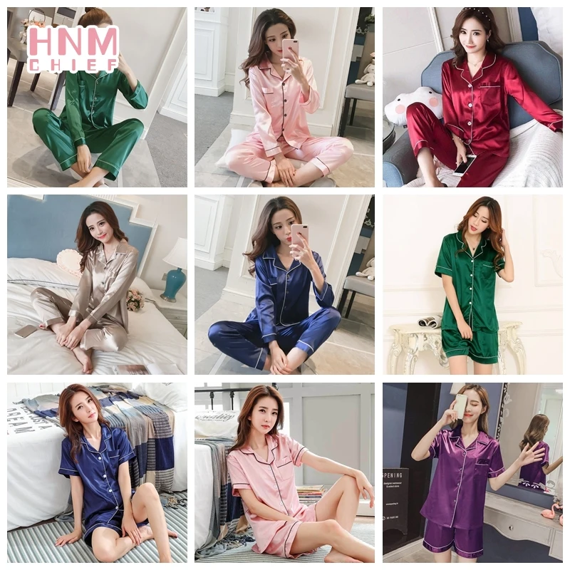 100% абсолютно новый! 2 стиля: короткий и длинный, шелковое ощущение атласной ткани в этом классическом атласном пижамном комплекте для женщин. Сатин изготовлен из 100% полиэфирной нити и вплетен в плотное переплетение, что делает его очень гладким и модным.