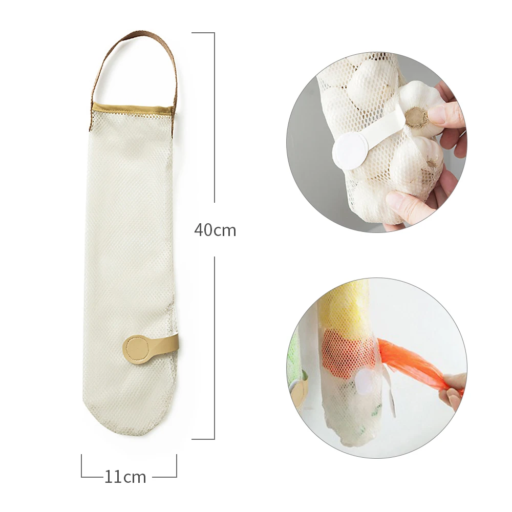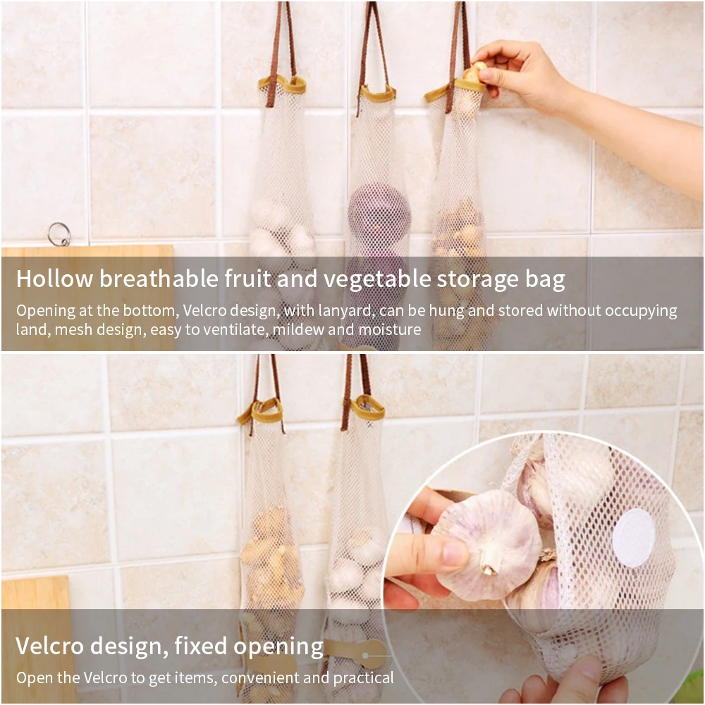 Кухонный мешок для хранения лука и картофеля, сетчатый мешок для хранения фруктов и овощей, подвесной мешок для хранения чеснока и лука, органайзер для храненияНазвание продукта: сетчатый мешок для хранения фруктов и овощейМатериал изделия: полиэстерУпаковка продукта: OPP мешокПринцип проектирования:Полый дышащий сетчатый мешок для хранения фруктов и овощейОтверстие в нижней части, дизайн на липучке, с шнурком, можно повесить и хранить, не занимая землюИспользуется для размещения фруктов, лука, чеснока и т. д., конструкция сетки, легко проветривается, плесени и влагиУпаковочный листПосылка включает в себя:1 * сетчатый мешок для хранения фруктов и овощей