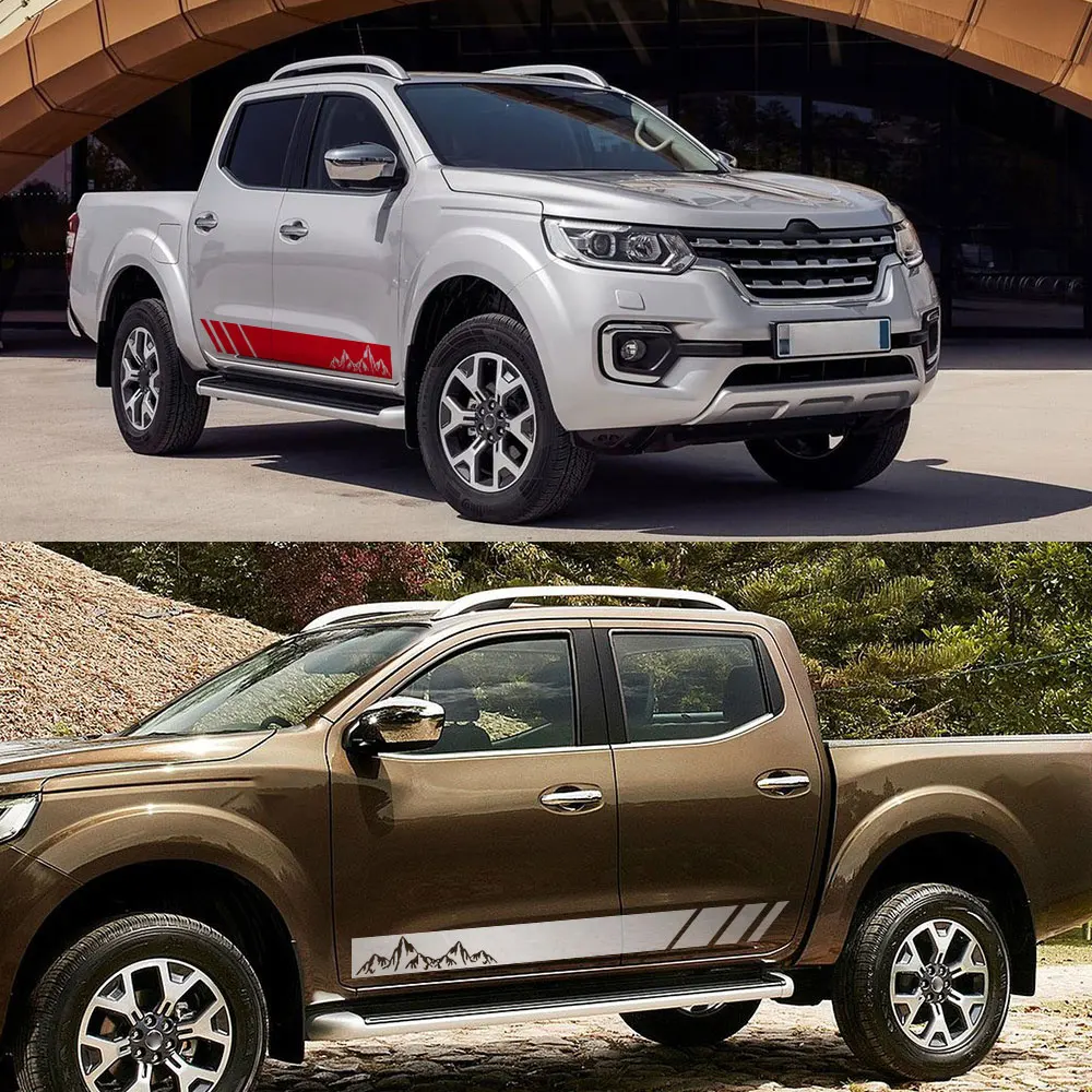 Автомобильные наклейки для Renault Alaskan, наклейки на дверь, боковую юбку, полосы, наклейки на грузовик, горный винил, на заказ, Декоративные Чехлы, автомобильные аксессуары