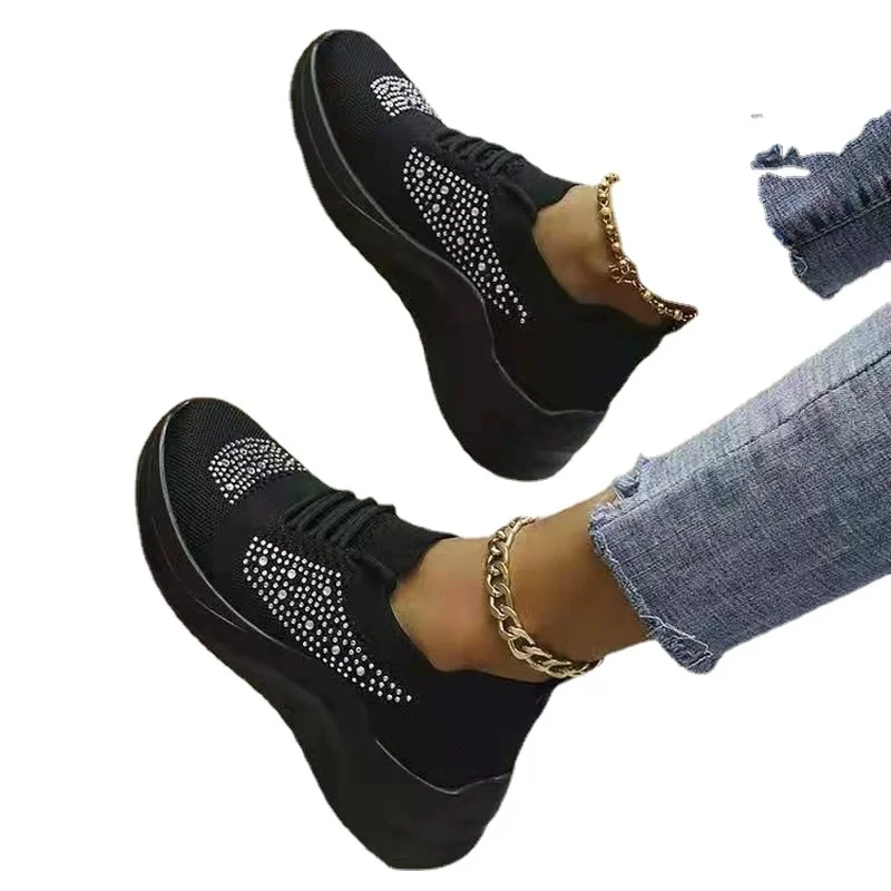 Кроссовки женские со стразами, дышащие повседневные спортивные туфли на платформе, со шнуровкой, Уличная обувь, большой размер 36-43, лето-осень