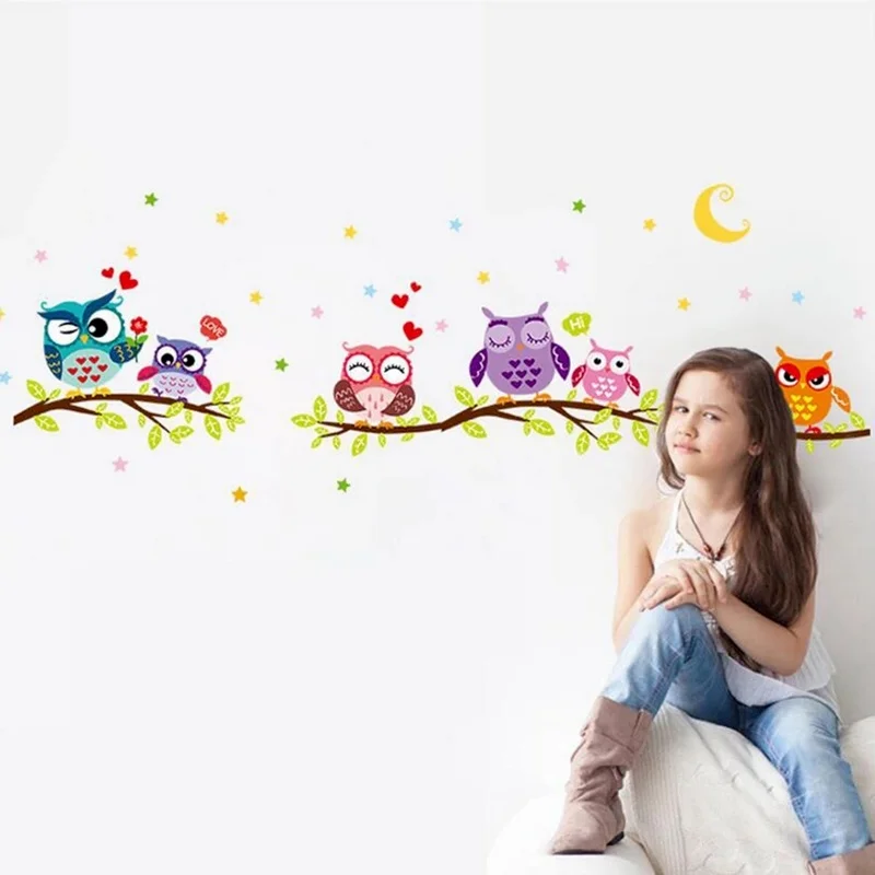 Самодельная наклейка на обои, счастливая Съемная водостойкая наклейка с мультяшными животными сова, настенная наклейка, детский домашний декор, обои для гостиной