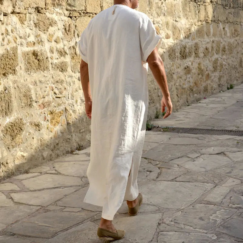 Мужской халат, однотонный хлопковый кафтан, мусульманский, арабский, исламский, с V-образным вырезом, с коротким рукавом, винтажная Домашняя одежда, 2021 Арабская Мужская Абая, размера плюс