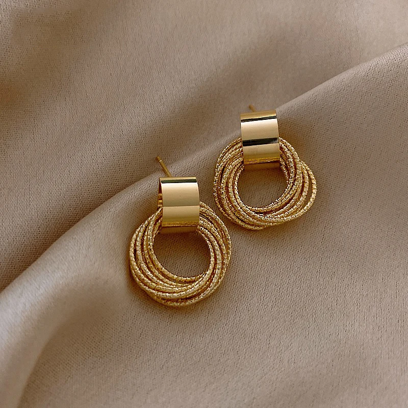 Серьги-кольца женские, многослойные, металлические, золотистые, 2021