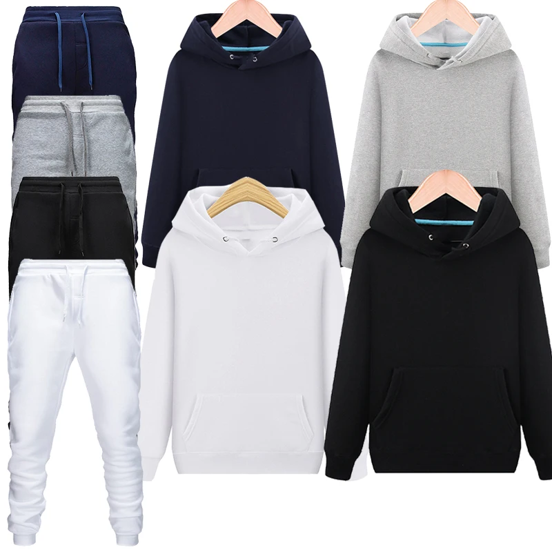 Мужской спортивный костюм, однотонный спортивный костюм из свитшота с капюшоном и штанов, 2021, S-4XL