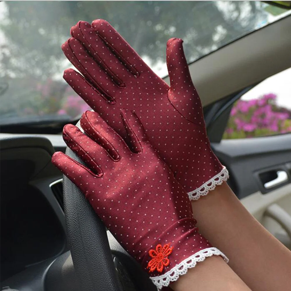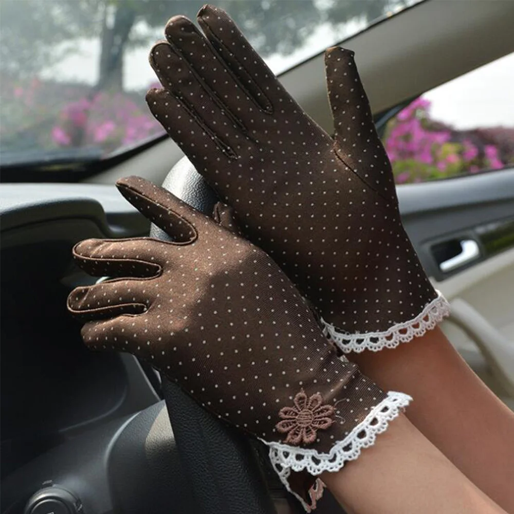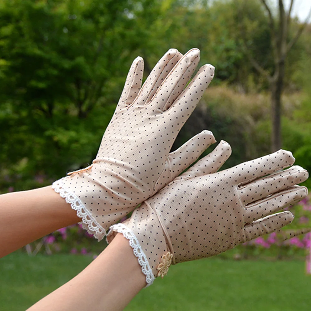 Женские летние хлопковые перчатки, кружевные лоскутные перчатки, Нескользящие солнцезащитные короткие тонкие перчатки для вождения, женские перчатки в горошек
