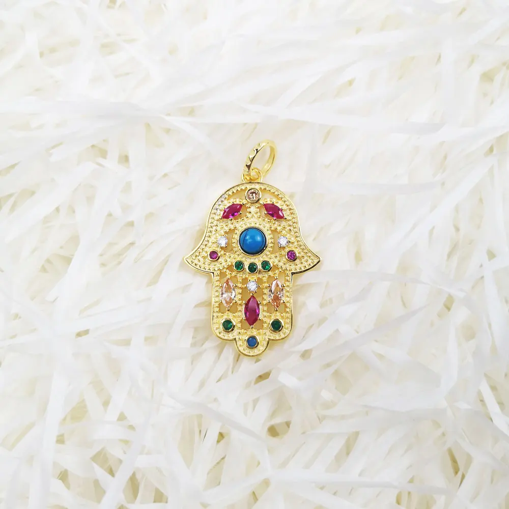 Подвеска рука Фатимы из серебра 925 пробы с красочными камнями подх...