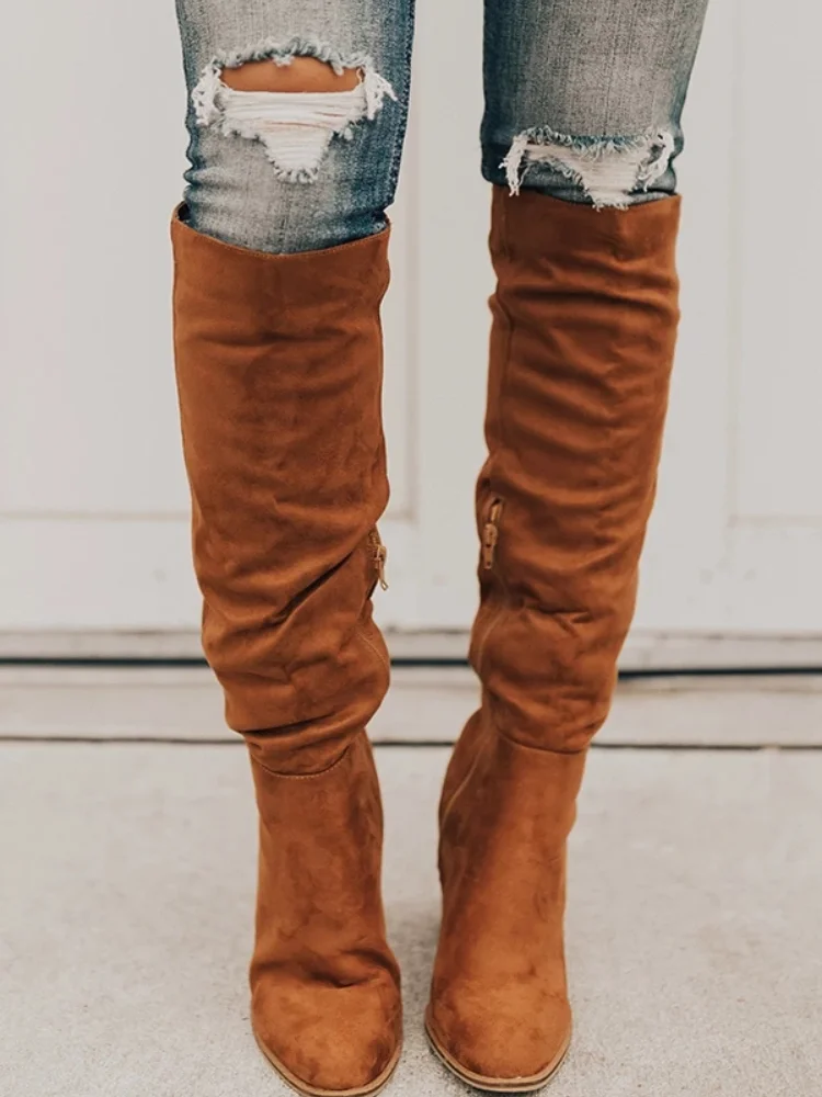 Женские сапоги до колена, на молнии, сексуальная обувь на высоком к...