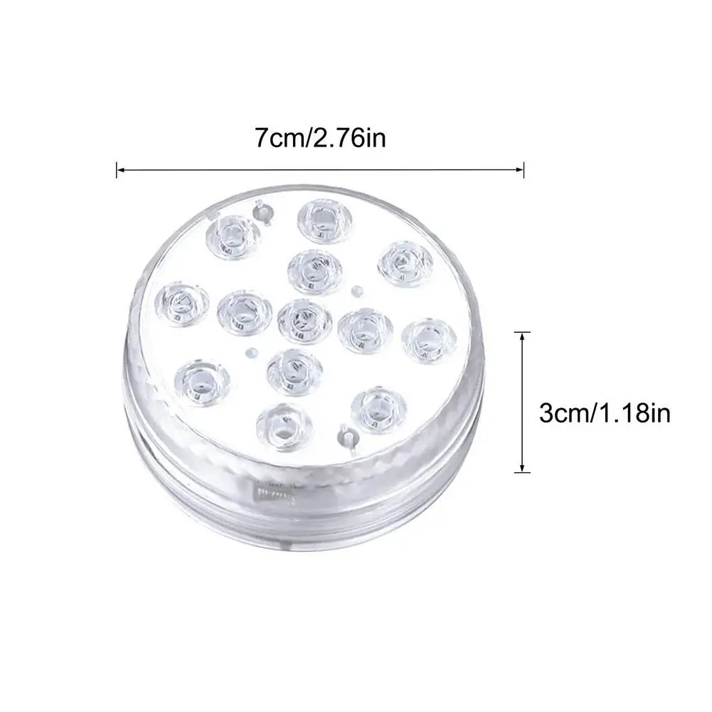 Размер лампы: около диаметр 7 см * высота 3 см/2,76*1,18 дюймовСветильник источник: 13LEDФункция: 16 цветов, 3 динамических режима, регулировка яркости, Функция синхронизацииСветовой поток: 300 лмРежим питания: зарядка через USBВстроенный аккумулятор: 1000 мАч литиевая батареяВремя зарядки: 3 часаВремя работы: 18 часовДлина usb-кабеля: 80 смМатериал корпуса: АБС-пластикВодонепроницаемость: IP68Управление метод: 21-ключ RF дистанционный пульт Управление (встроенный CR2025 аккумулятор)Расстояние дистанционного управления: в пределах 30 мСветильник срок службы от источника энергии: 50000hПрименимые варианты: плавательные бассейны, аквариумы, вазы, аквариумы для рыб, фонтаны, освещение для украшения дома и т. д.Упаковочный лист:Лампа * 1Радиочастотный пульт дистанционного управления * 1Присоска * 3Линия UBS * 1Руководство * 1ИлиЛампа * 2Радиочастотный пульт дистанционного управления * 1Присоска * 5Линия UBS * 1Руководство * 1ИлиЛампа * 4Радиочастотный пульт дистанционного управления * 4Присоска * 10Линия UBS * 2Руководство * 1Примечание:1. Из-за проблем с световыми эффектами и углами съемки, в продукте будут определенные допуски, пожалуйста, поймите.2. Из-за ручного измерения, продукт имеет некоторую погрешность в размере.