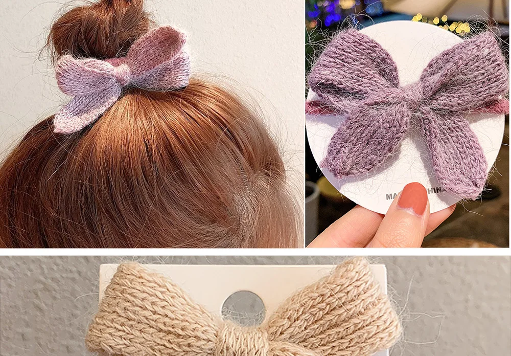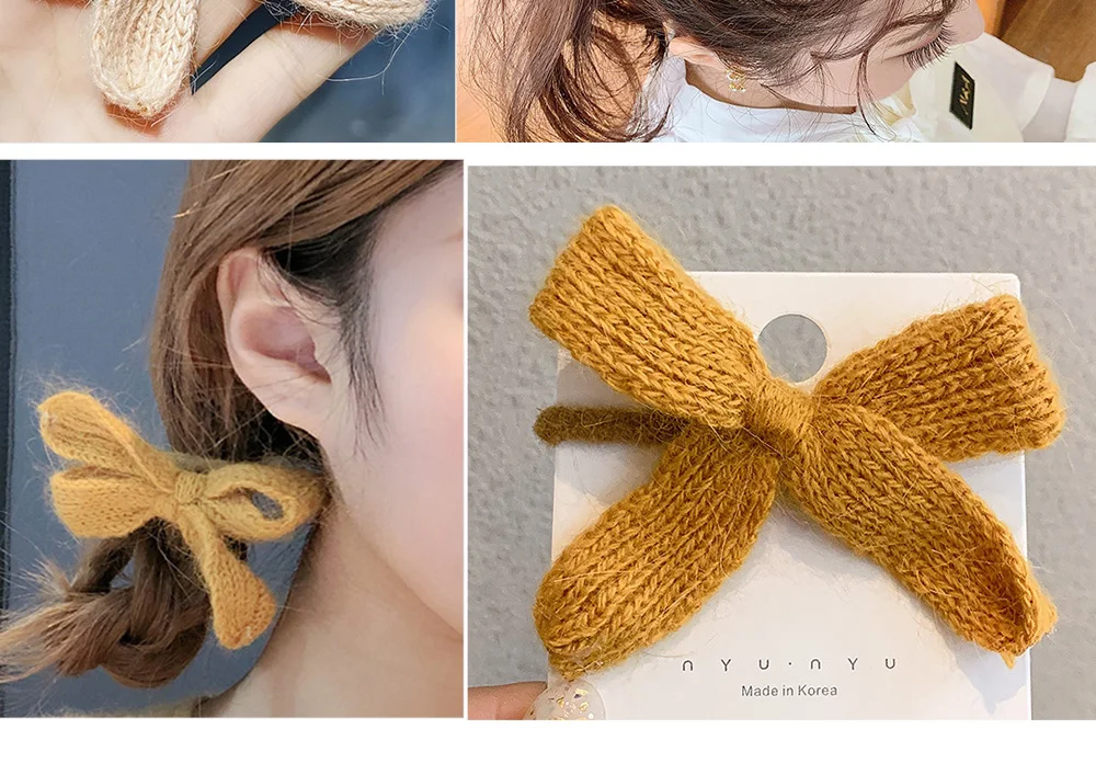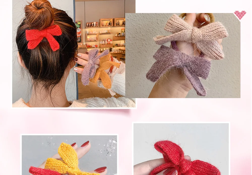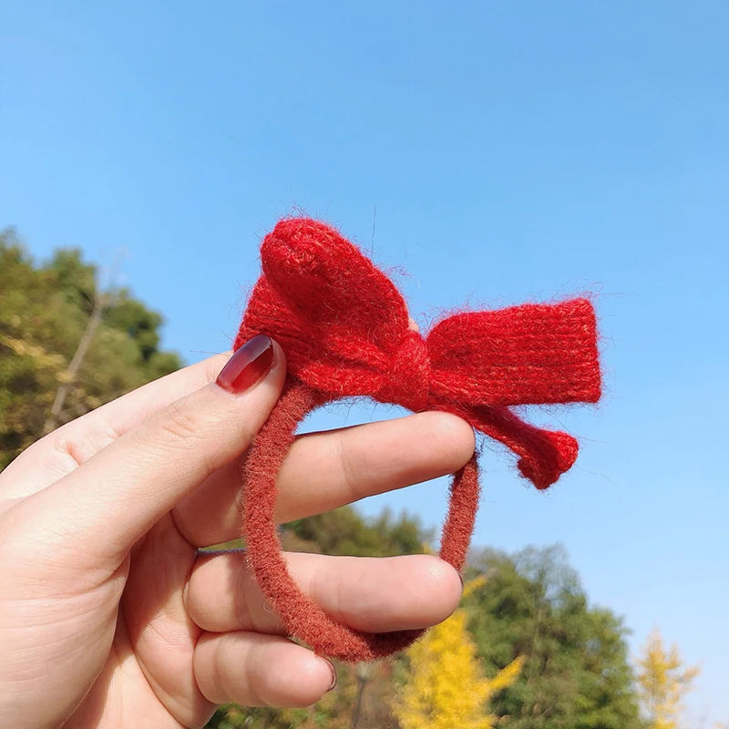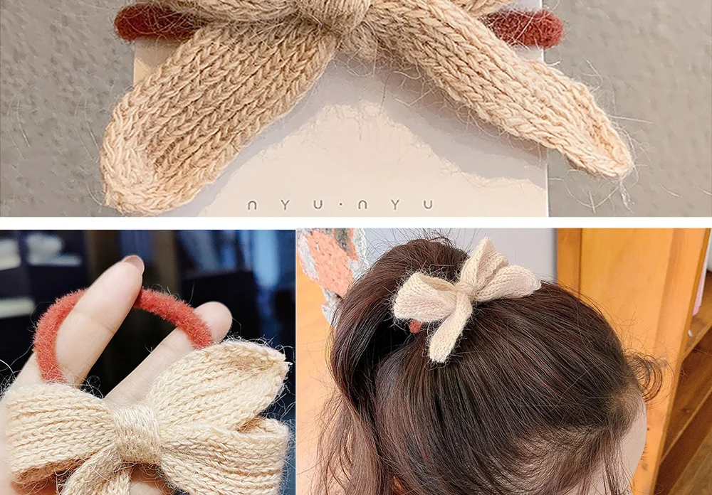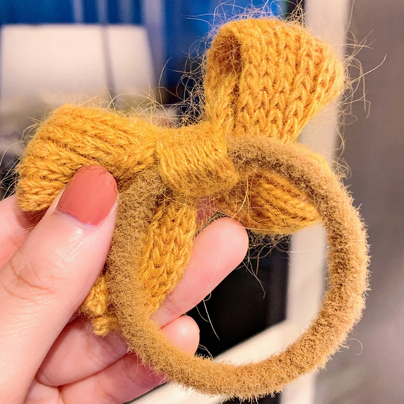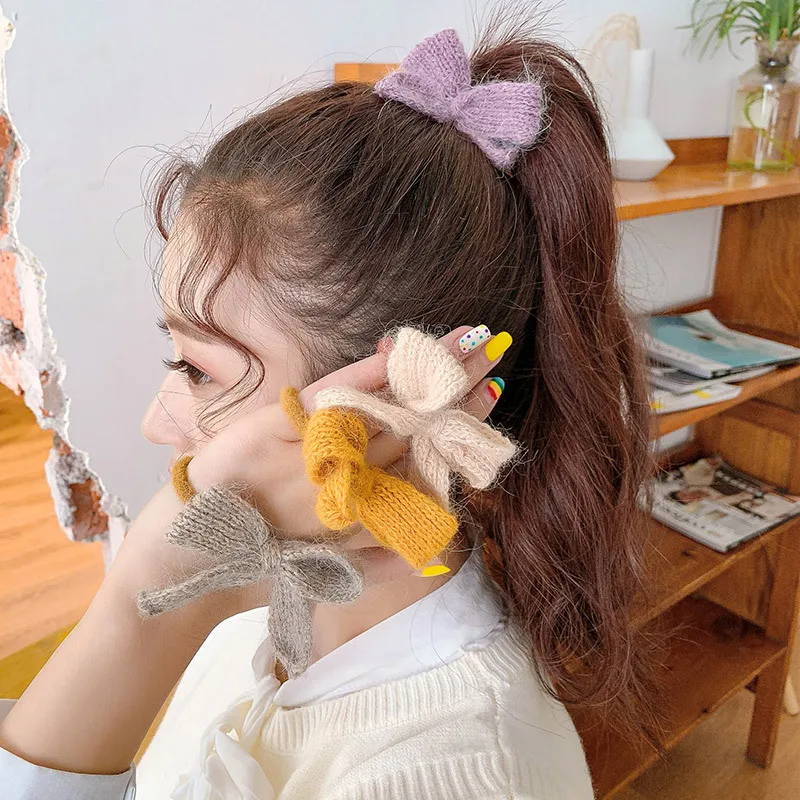 Однотонная вязаная резинка для волос с бантом в Корейском стиле, модные аксессуары для волос для женщин и девушек, головной убор с держателем для конского хвоста