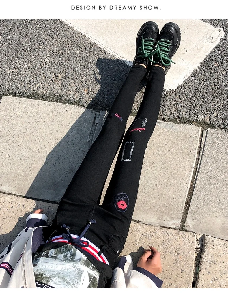 Уличная узкие женские джинсы Большие размеры штаны-карандаш стрейч ...