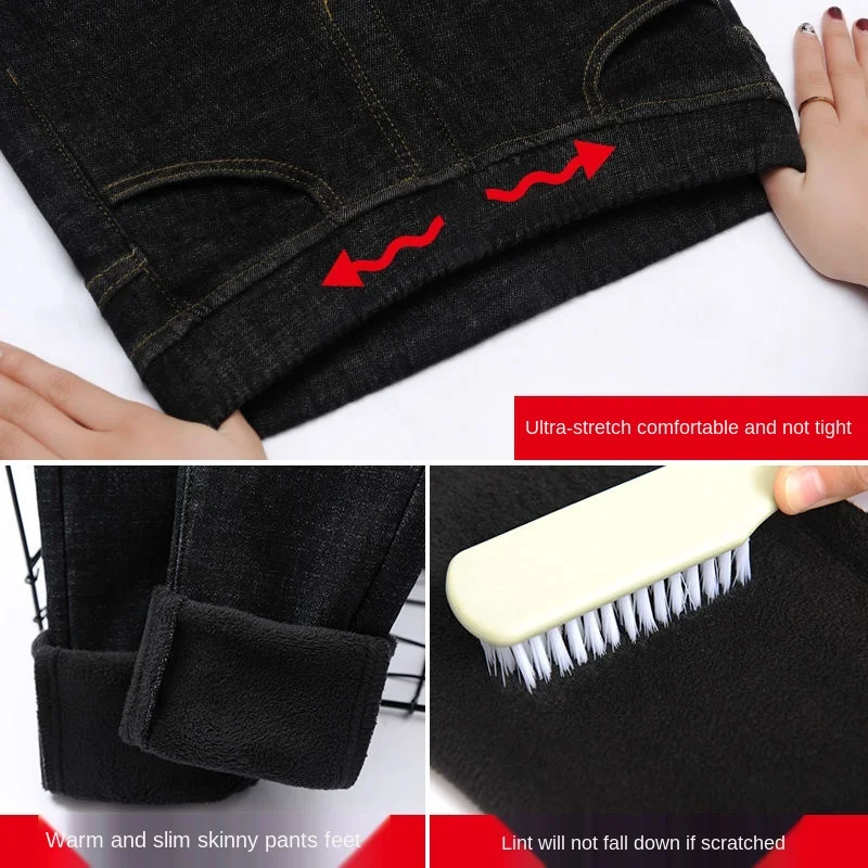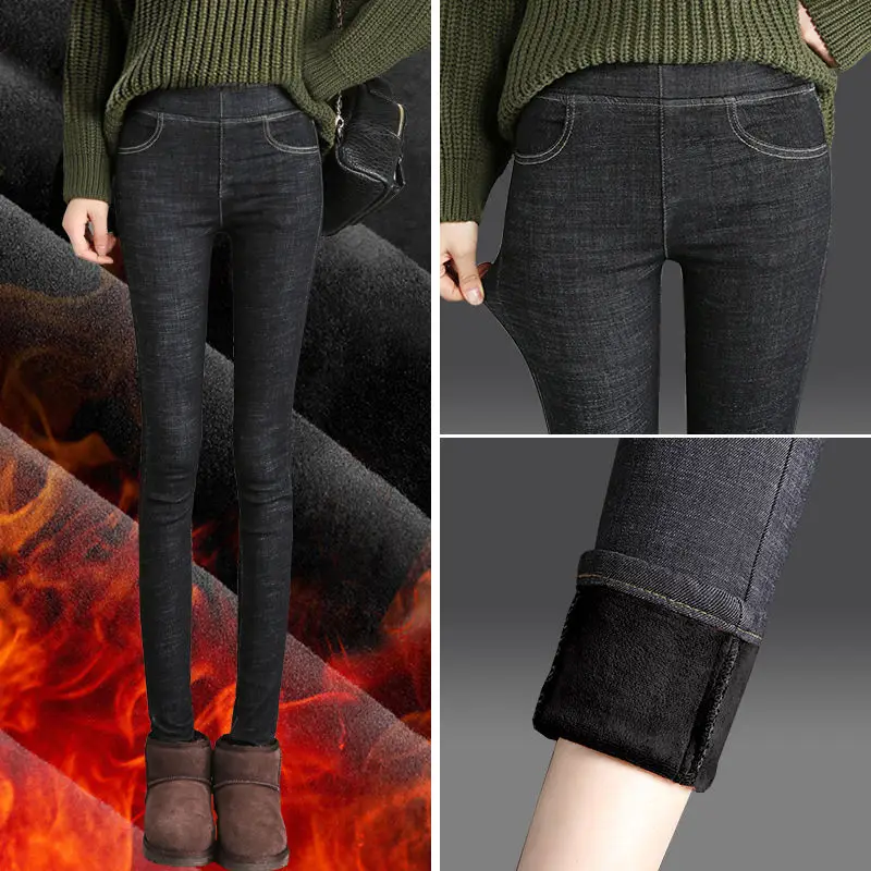 Зимние плотные бархатные женские джинсы с высокой талией, облегающи...