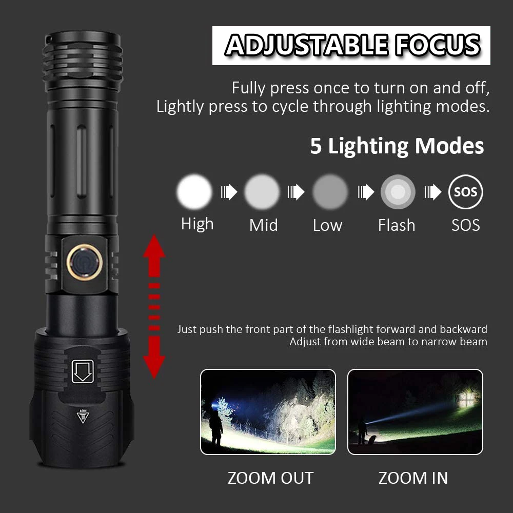 Режим прожектора/прожектора фонарика можно свободно регулировать, что очень подходит для активного отдыха