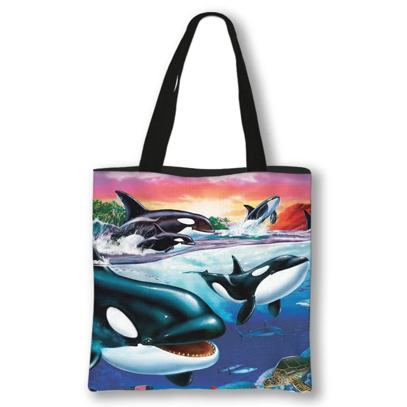 Женская Холщовая Сумка-тоут с принтом дельфина, экологически чистая многоразовая дорожная Сумочка для покупок на ремне, вместительный шоппер