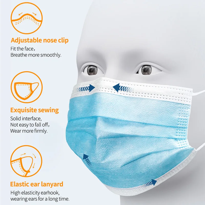 Одноразовая маска гражданского 3-х слойные ежедневная маска