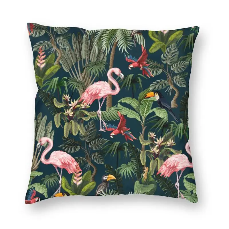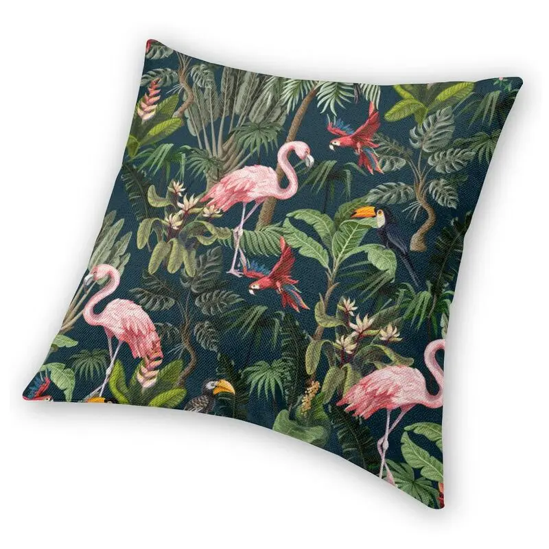 Наволочка для подушки, с рисунком джунглей, фламинго и подушка с изображением попугая, С Рисунком Птиц, для гостиной, крутая декоративная наволочка