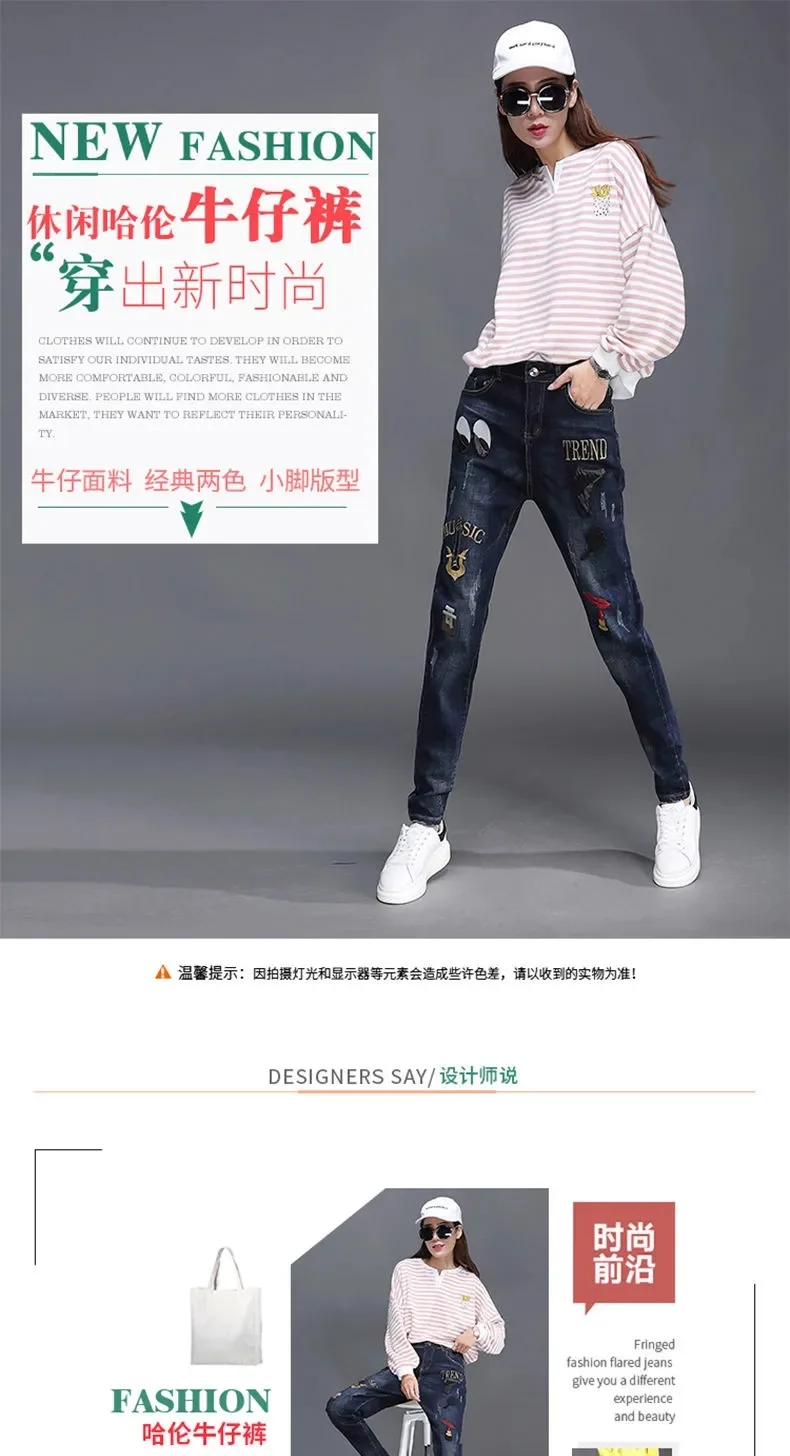 Женские джинсы в стиле ретро, весенние брюки с вышивкой и принтом в...