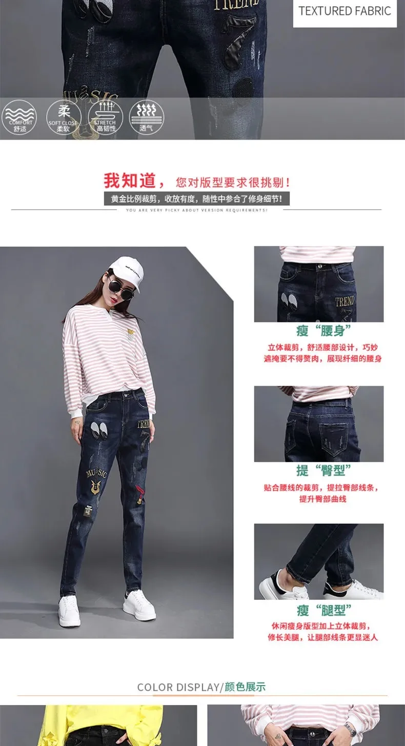 Уличная узкие женские джинсы Большие размеры штаны-карандаш стрейч ...