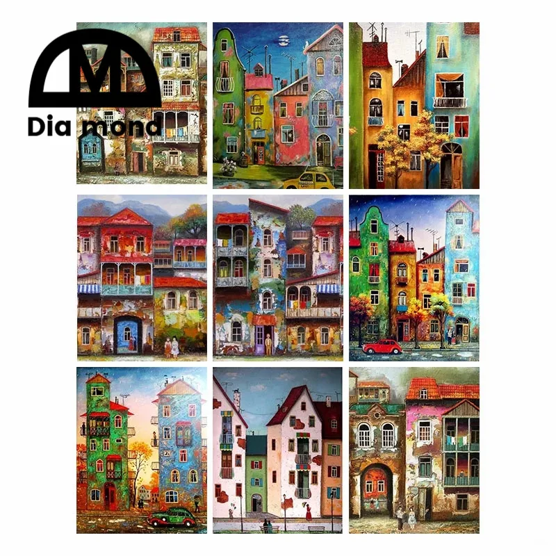 Абстрактная 5D сделай сам, строительство, город, картина из страз, мультфильм, Алмазная мозаика, искусство, полная вышивка, пейзаж, картины Стразы