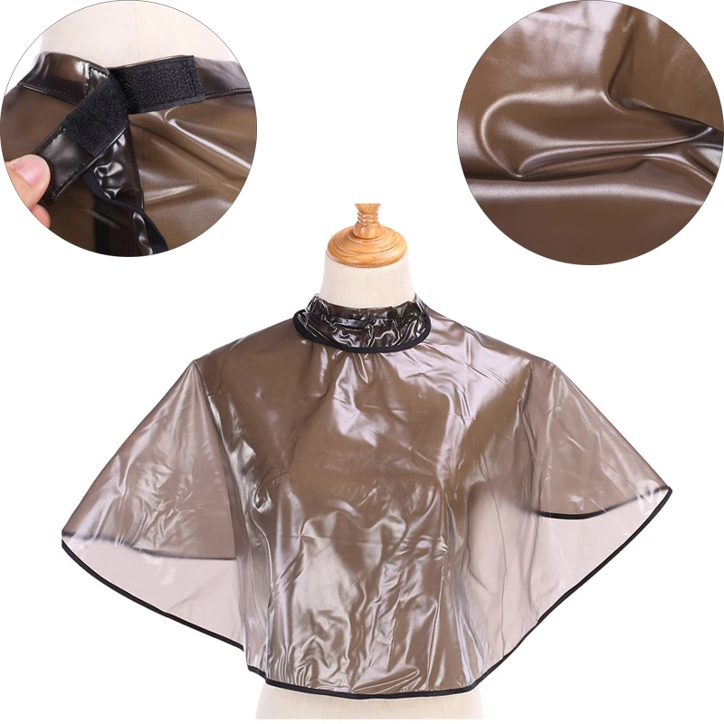 Шаль для парикмахерских сделана из матового прозрачного ПВХ материала, оснащена передовыми технологиями производства, ткань мягкая и красивая, цвет яркий, антистатический, не окрашивается, непроницаемый и обладает хорошей воздухопроницаемостью. Мастерство изысканное, удобное на ощупь, красивое и красивое, что делает его идеальным выбором для парикмахеров.