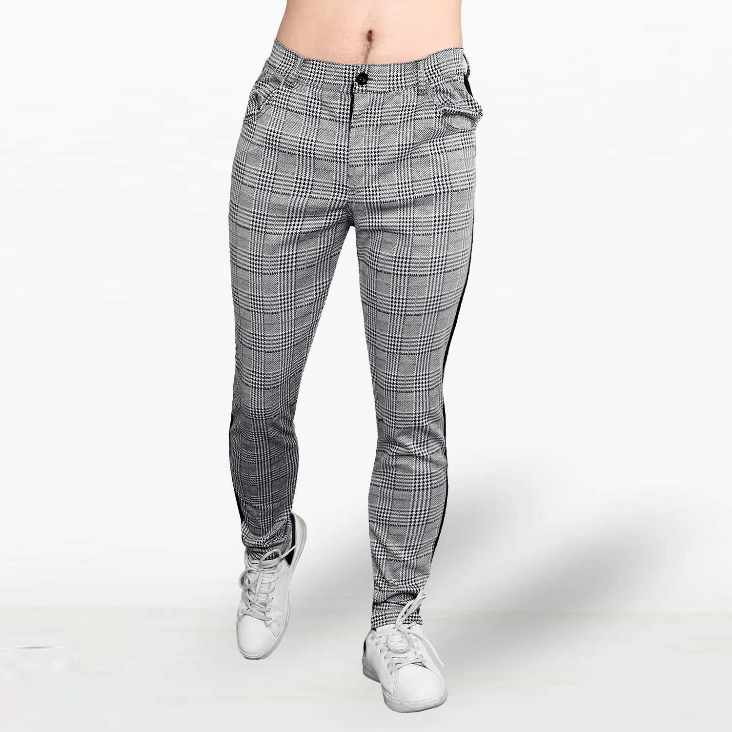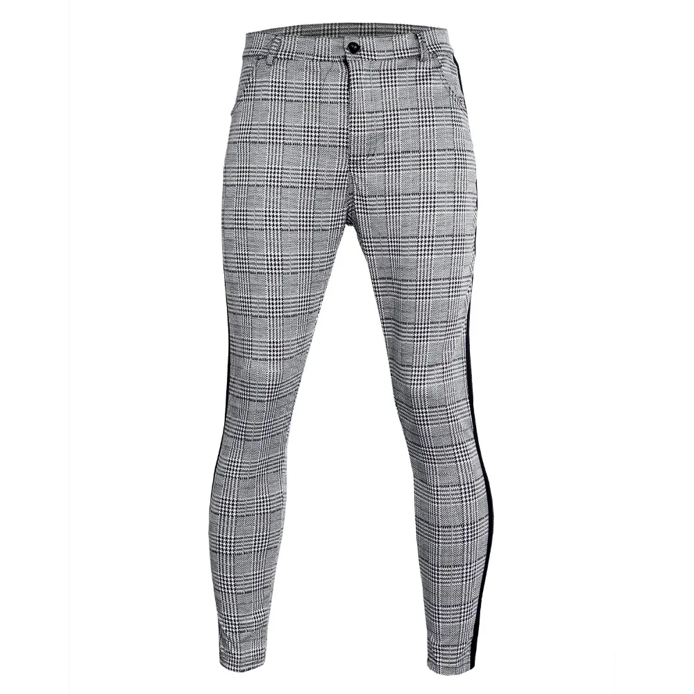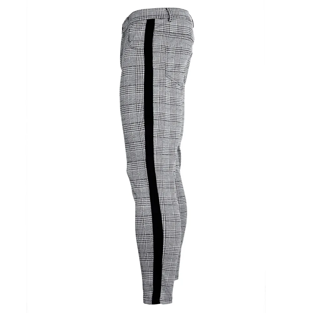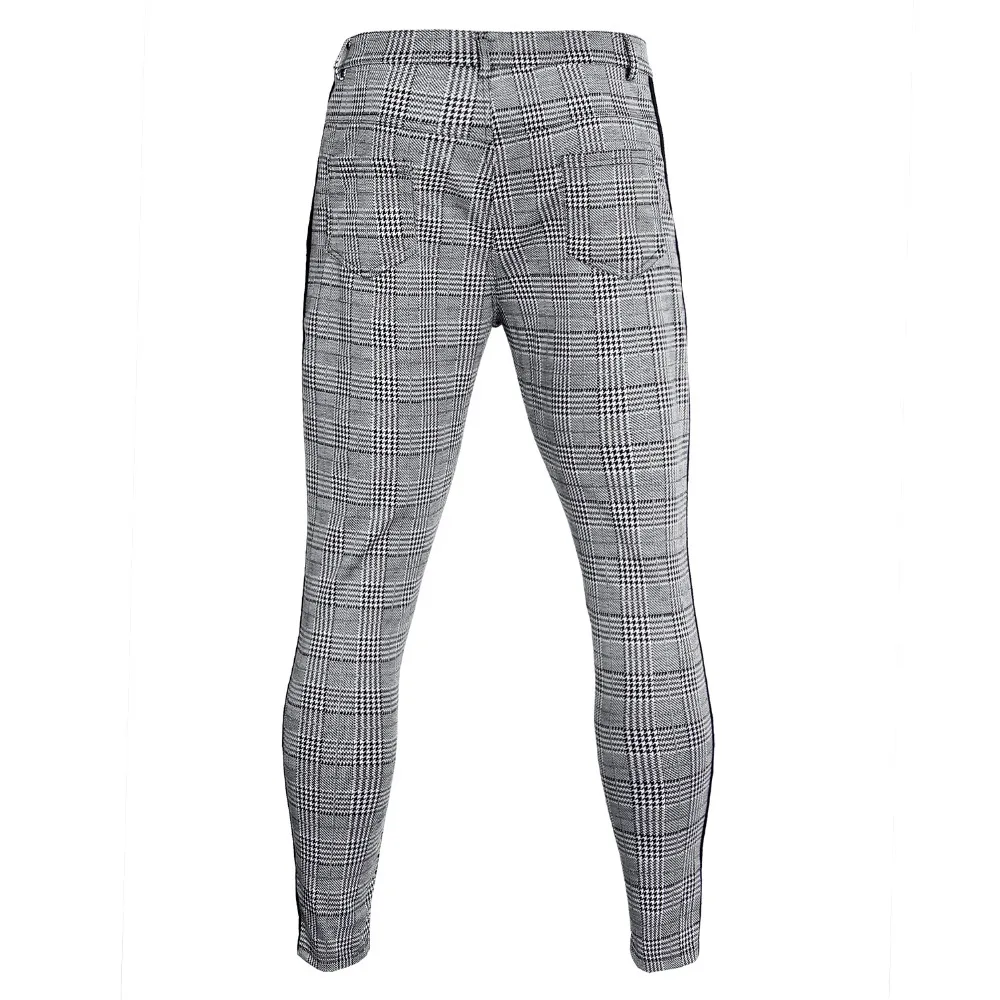 Длинные брюки хип-хоп, уличные штаны, повседневные модные мужские Штаны для бега, в клетку, с полосками сбоку, узкие спортивные штаны