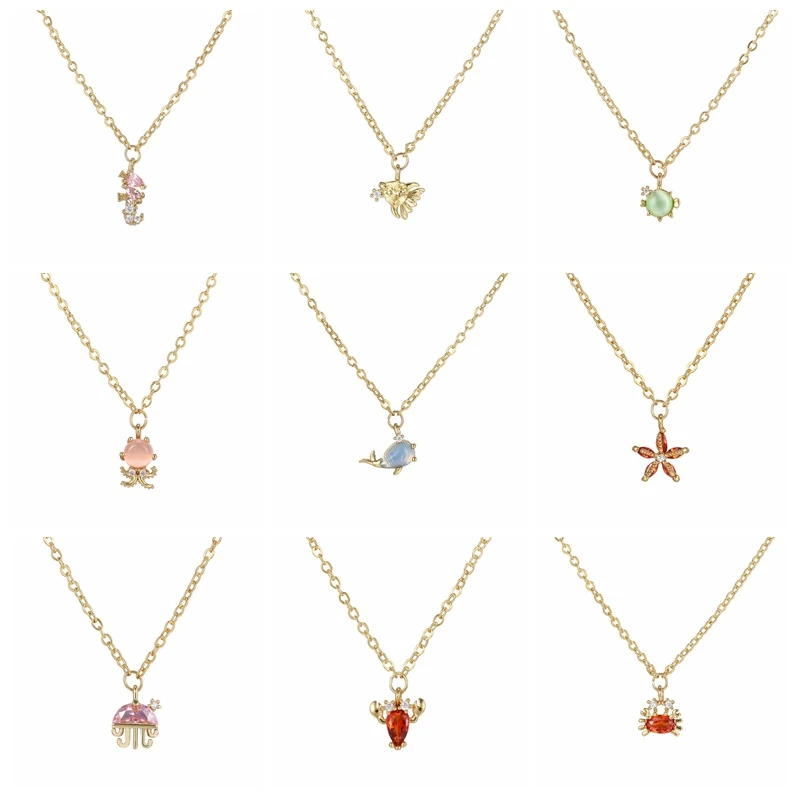 Летние украшения ожерелье-цепочка для влюбленных пар подарок ко Дню Святого Валентина, украшенные разноцветными кристаллами Краб Морская звезда Омар ожерелья с подвесками