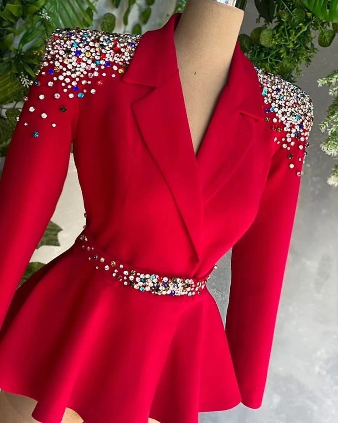 Элегантное платье для матери невесты Для женщин костюмы белыйкрасныйсиний пальто с бисером индивидуальный заказ Slim Fit лацкан с тупым углом куртка Вечеринка пиджаки для женщин