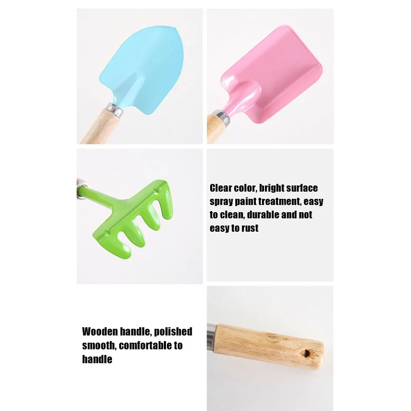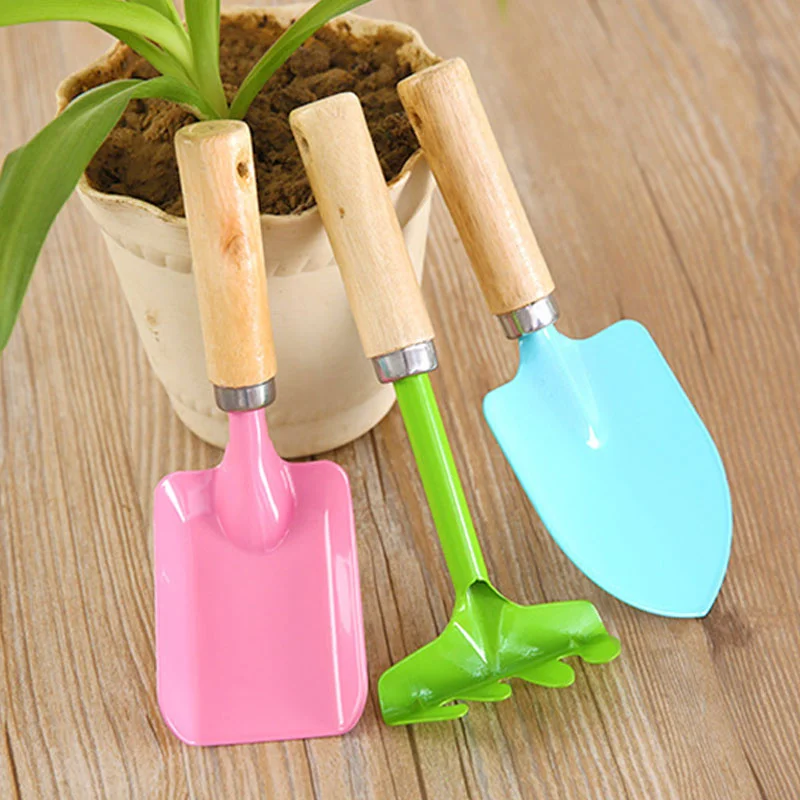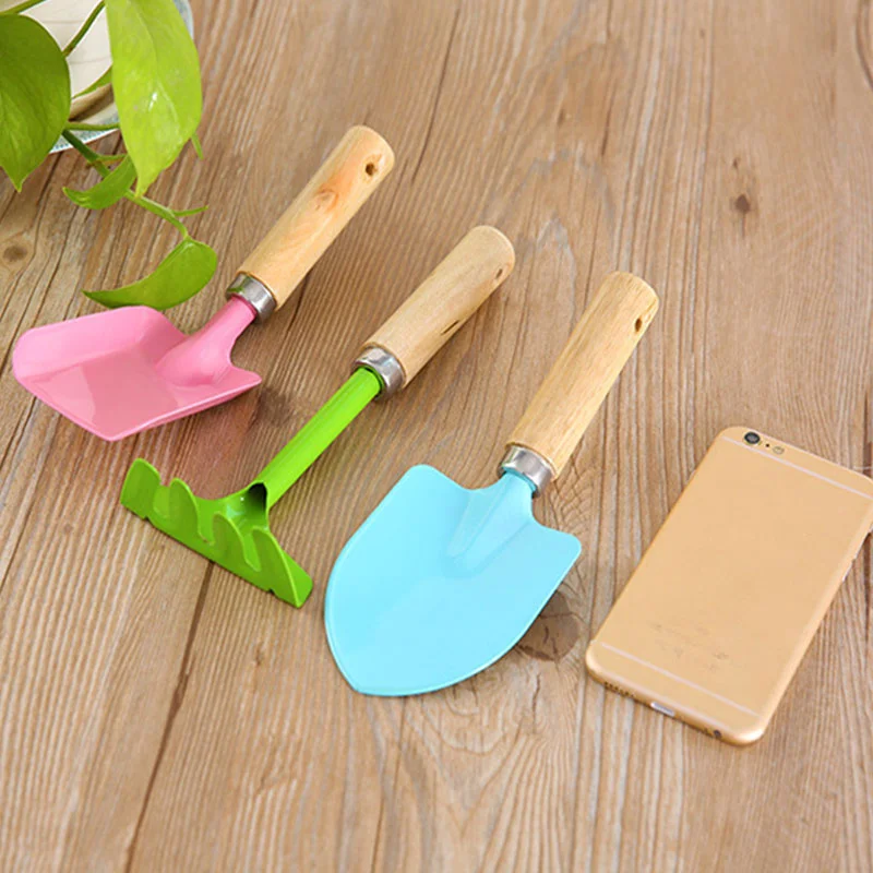 Лопатка-грабли детская, металлическая, с деревянной ручкой, 3 шт.
