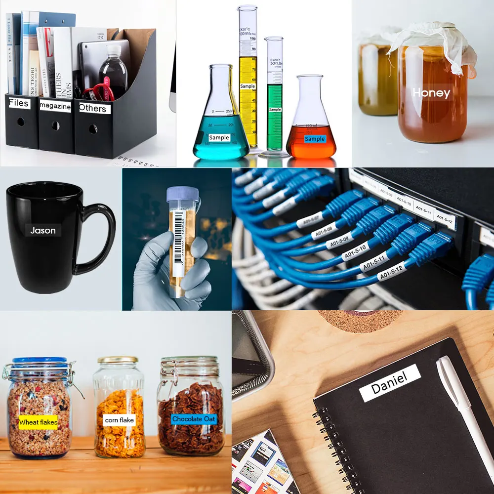 Применение:Наша лента для изготовления этикеток обрабатывает сотни задач для идеальной организации. Это может помочь вам организовать дома, офиса, лаборатории, на открытом воздухе в течение десятилетий без выцветания или размазывания.