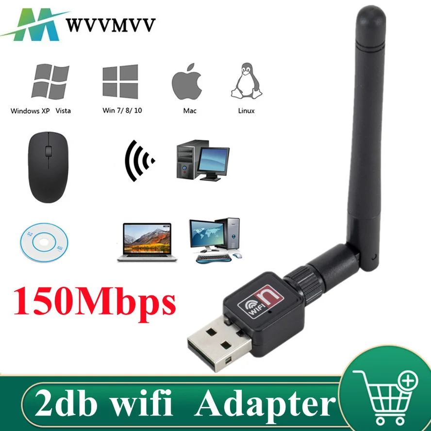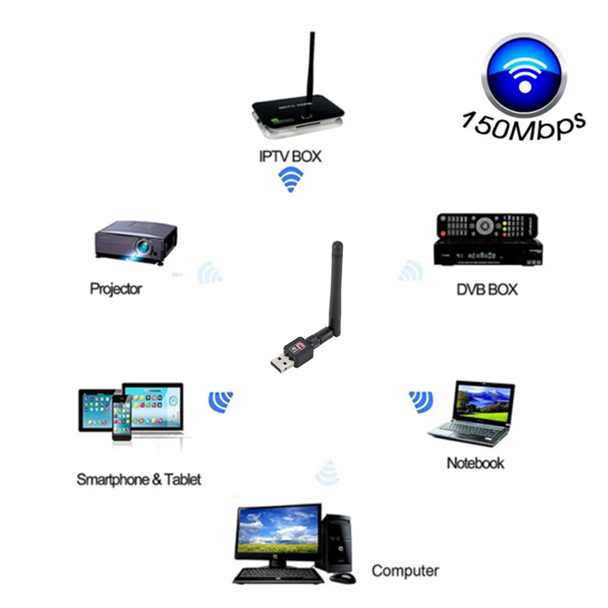 WVVMVV беспроводная Wi-Fi сетевая карта 150M USB 2,0 802,11 bgn LAN антенна адаптер с антенной для ноутбука ПК Мини Wi-Fi донгл