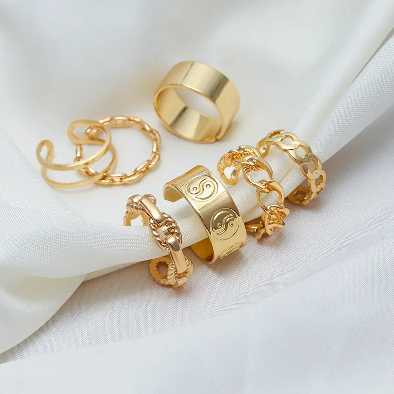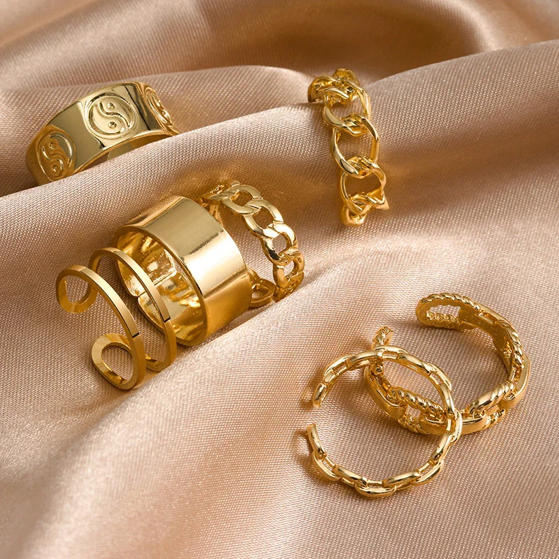 2021 Простые открытые панковские женские Кольца для женщин и мужчин, модные золотые, Серебристые цвета, цепочка для женщин и мужчин, регулируемые кольца, набор ювелирных изделий