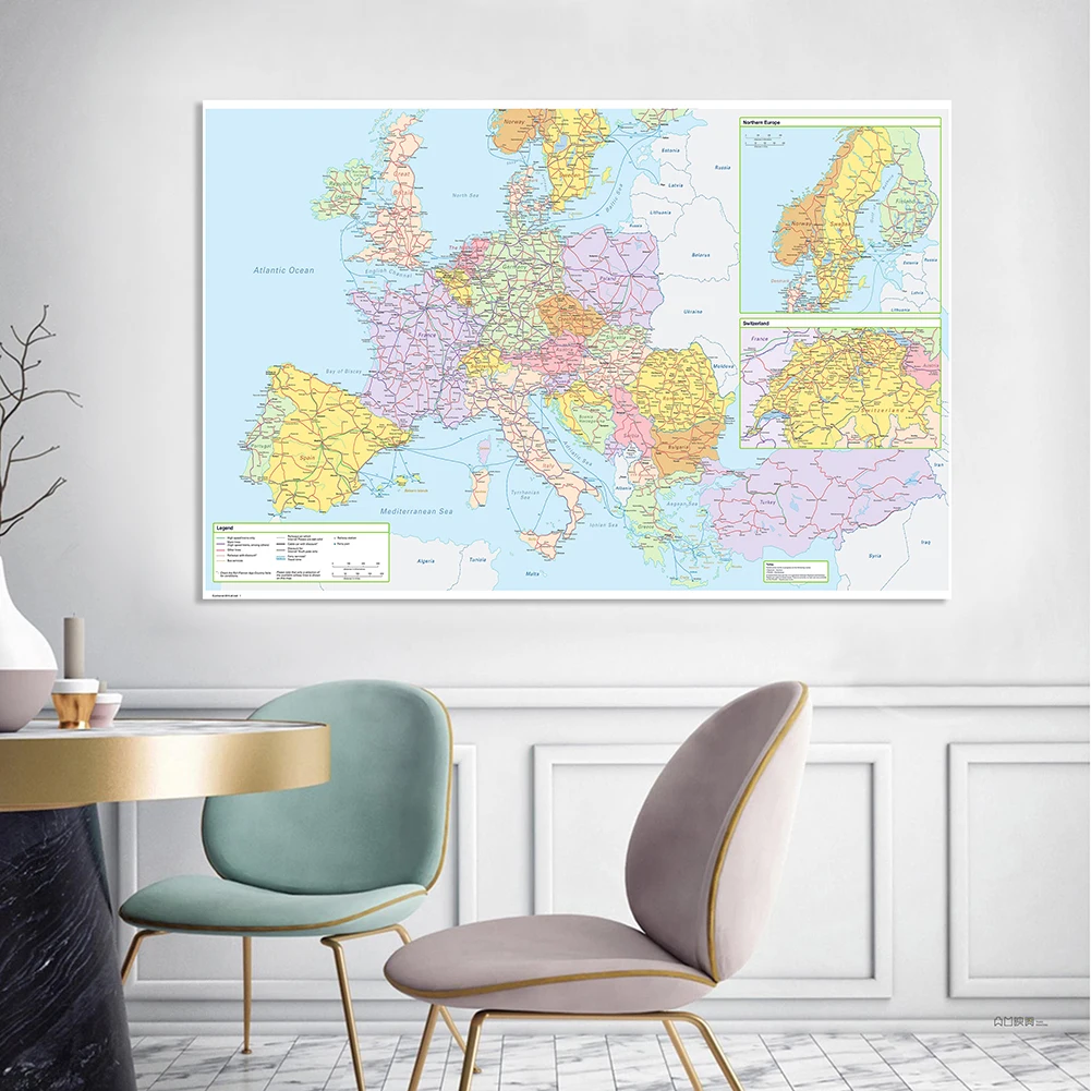 Постер на нетканом холсте, 225 х150 см, Европа, политическая карта дорожного движения, большой, школьные принадлежности, украшение для дома