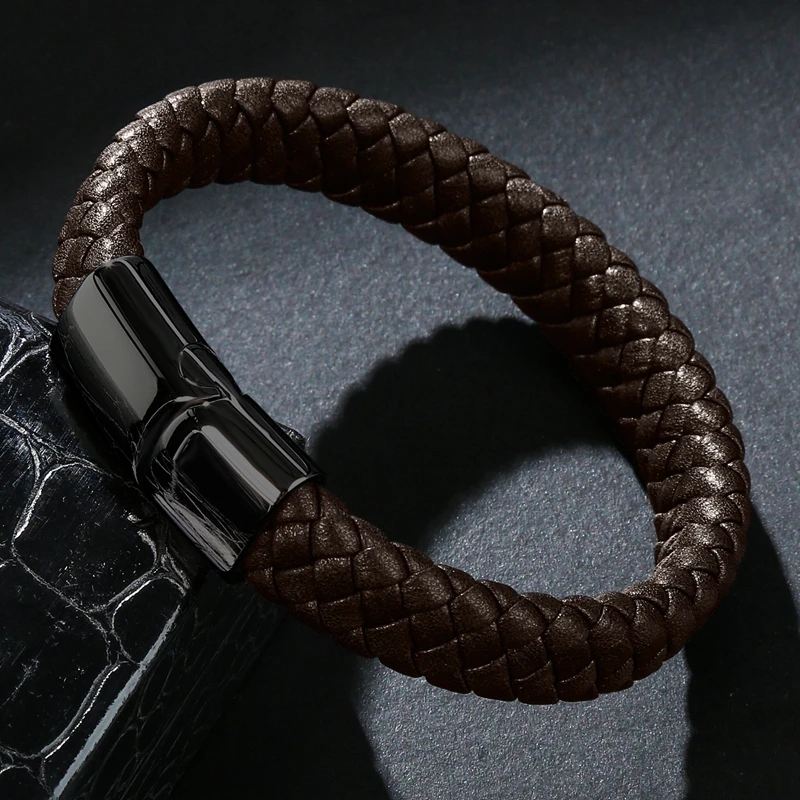 Модный плетеный кожаный мужской браслет, черный гладкий браслет из ...