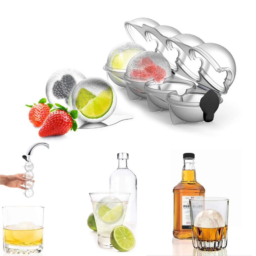 Новый аппарат для производства мороженого 4 полости форма кубика льда круглой форма для ледяного шара "сделай сам" для питья виски коктейль-бар инструмент Кухня аксессуары