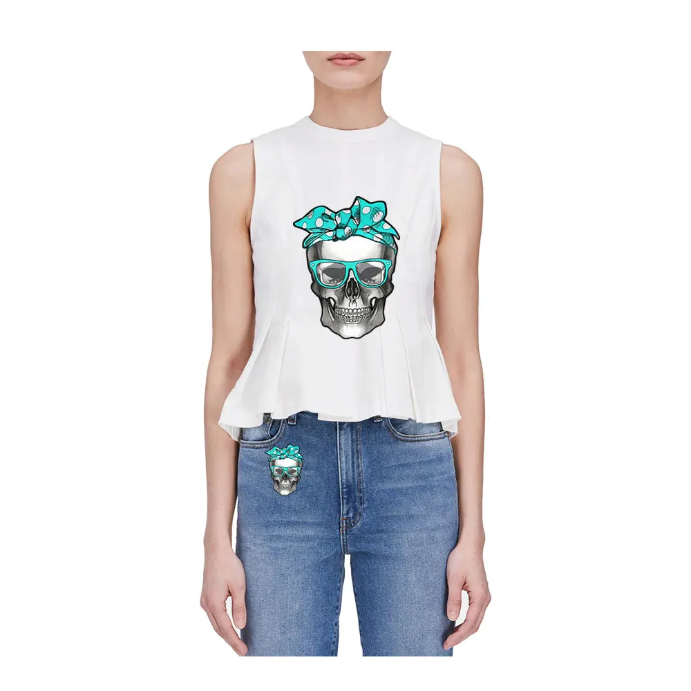 Прохладный патч для переноса утюгом череп патчи для одежды футболка...