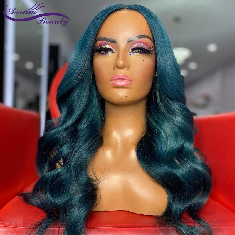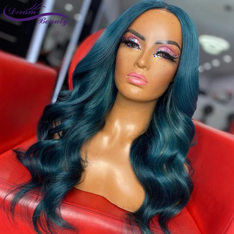 Темно-зеленые 13x4 кружевные передние человеческие волосы парики для женщин предварительно выщипанные волнистые кружевные передние парики бразильские волосы Remy 180% Dream Beauty