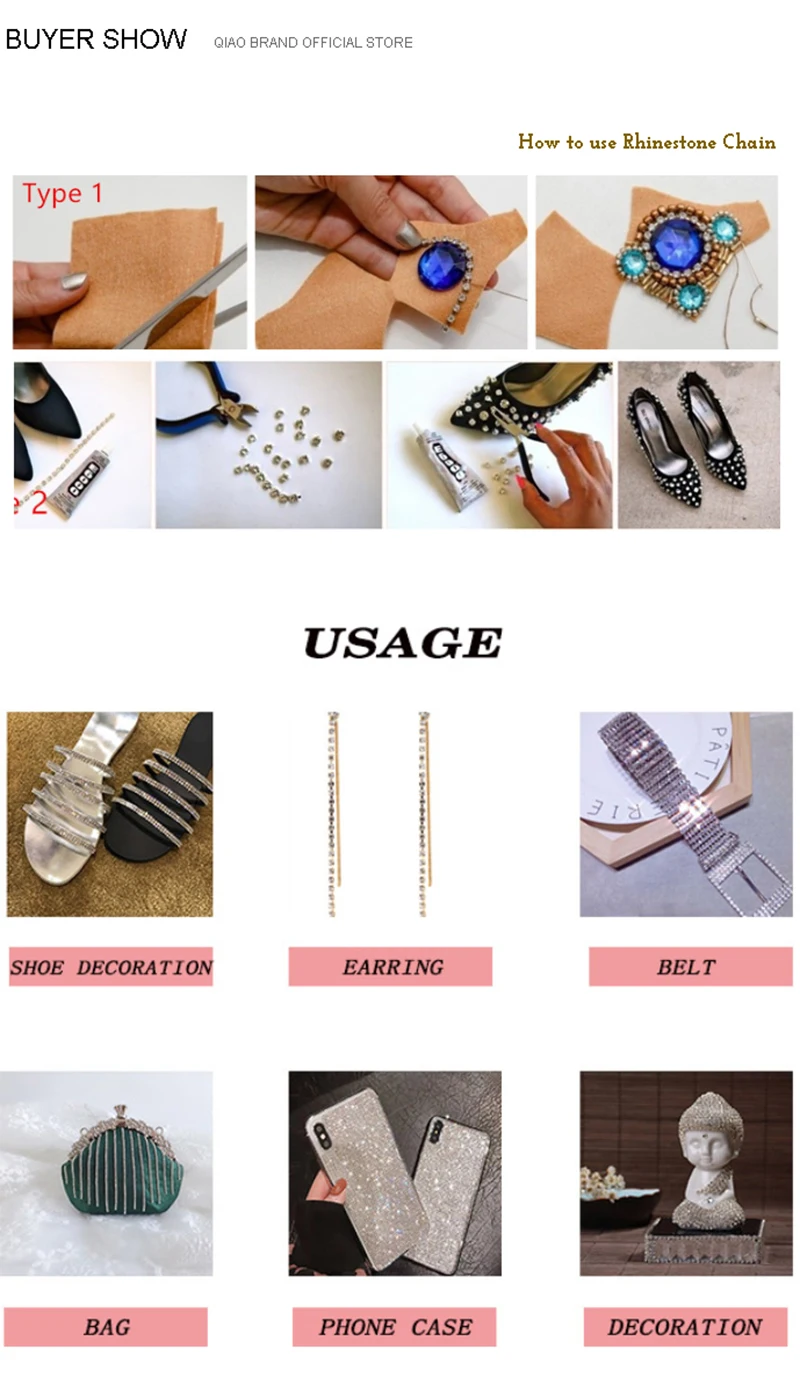 Цепочка для шитья с кристаллами, стразы разных цветов, клей на сере...