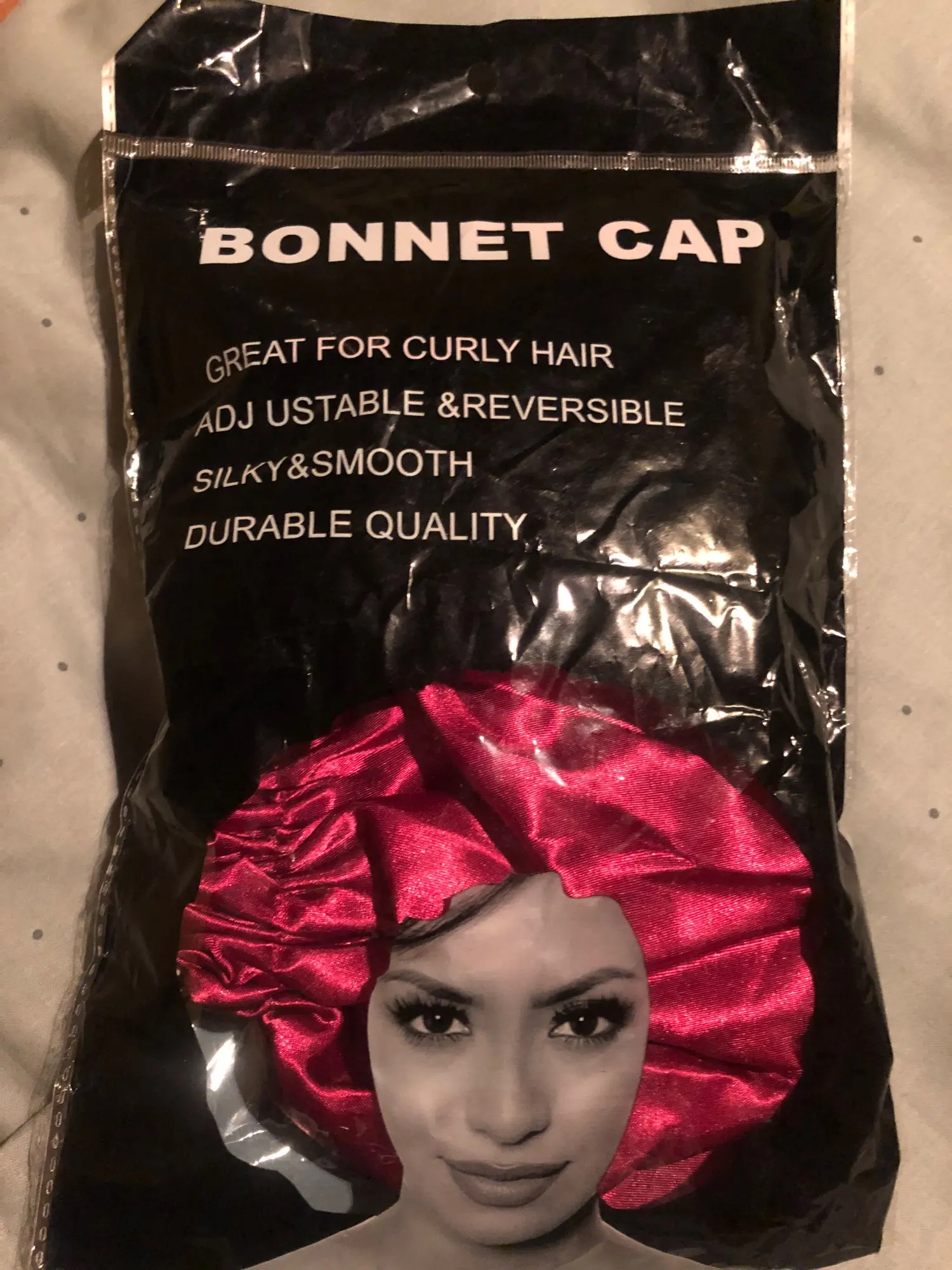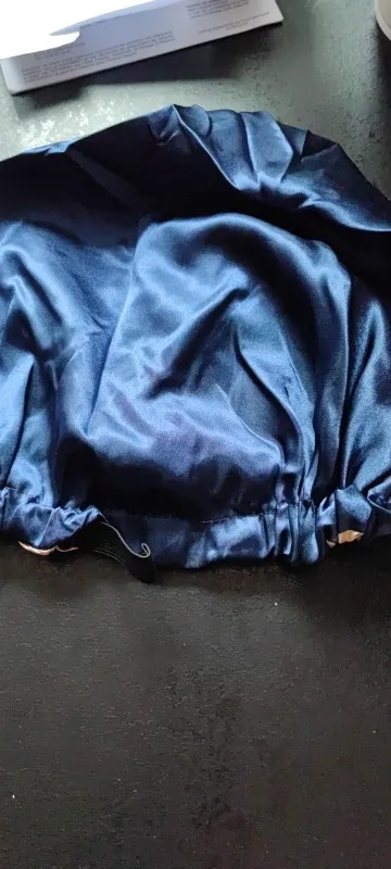 Шапка как на фото, немного нитки торчат, но не критично. Посмотрим как в использовании себя поведёт. Размер регулируется. Брала для сохранения кудрей на ночь.