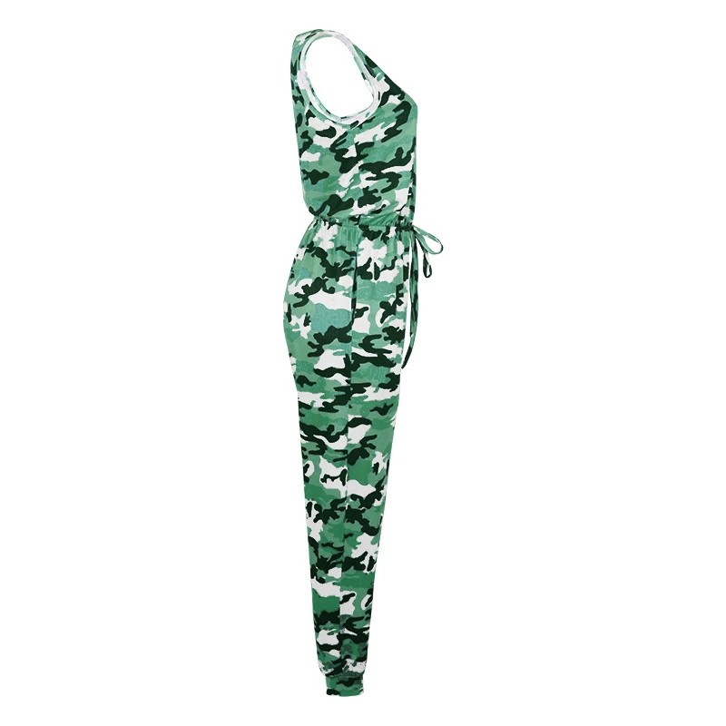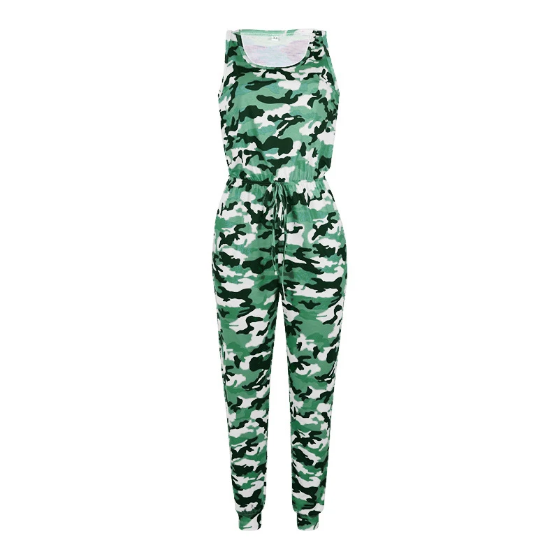 Комбинезон женский летний, камуфляжный, без рукавов, с завязками, с высокой талией и круглым вырезом