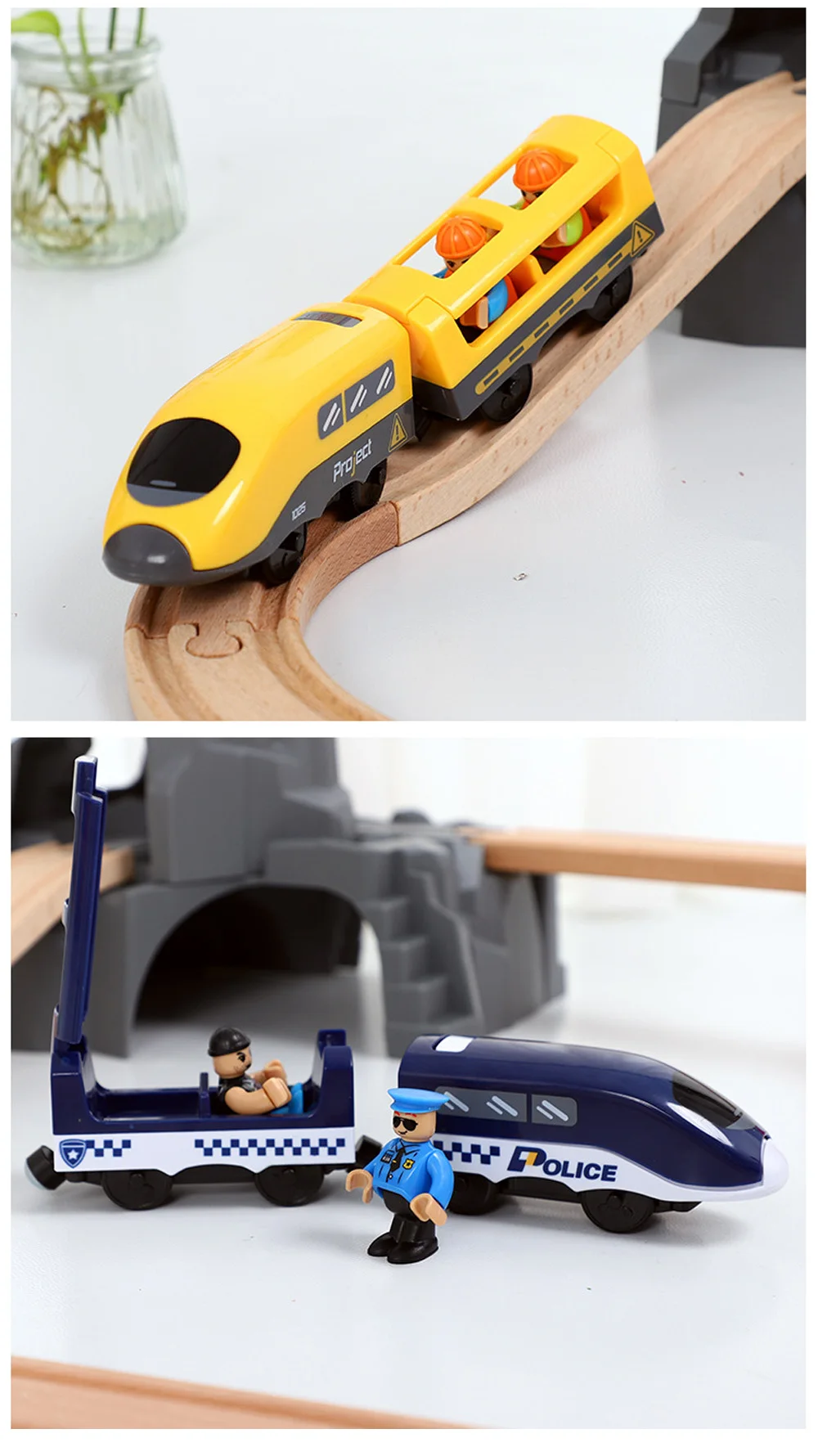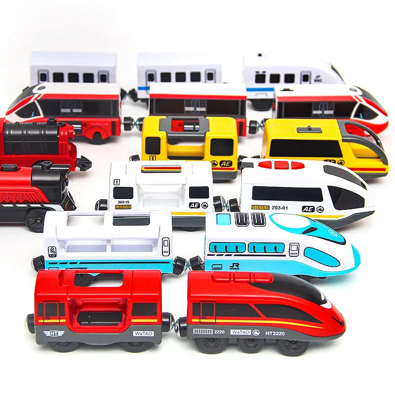 Набор детского электропоезда на радиоуправлении, локомотив, магнитный поезд, игрушка с отлитыми слотами, подходит для деревянной железной дороги Biro, игрушки для детей, подарки