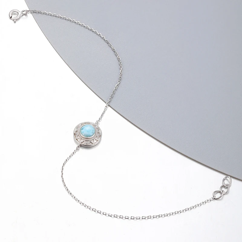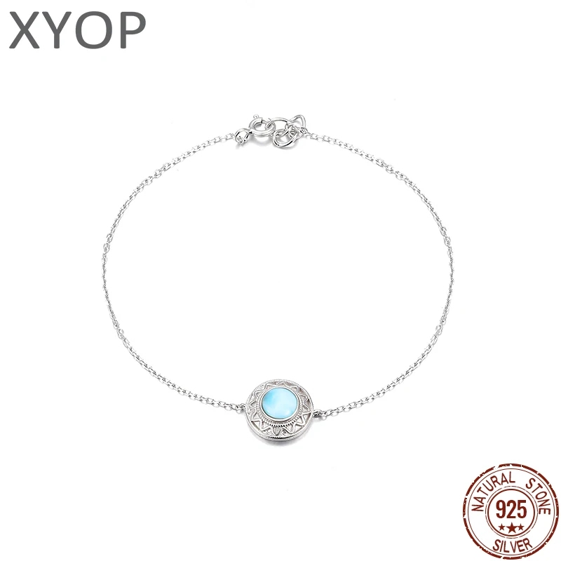 Модные солнцезащитные очки в стиле ретро с Стиль Элегантные 925 стерлингового серебра натуральный камень Ларимар браслет Мода ювелирные изделия подарок для женщин