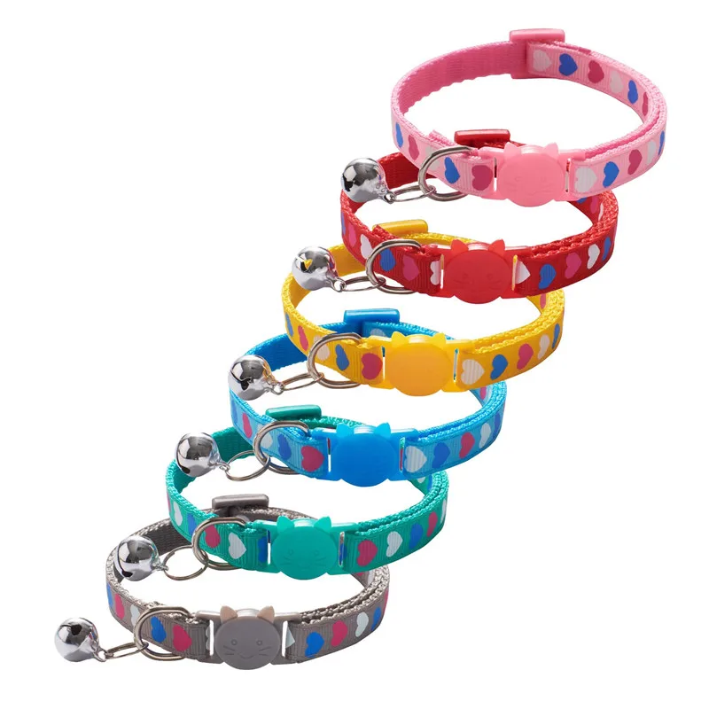 Трехцветный милый ошейник в форме сердца для кошки, регулируемая звучащая безопасная Пряжка, ошейник для маленькой собаки, модные товары для домашних животных, Новинка