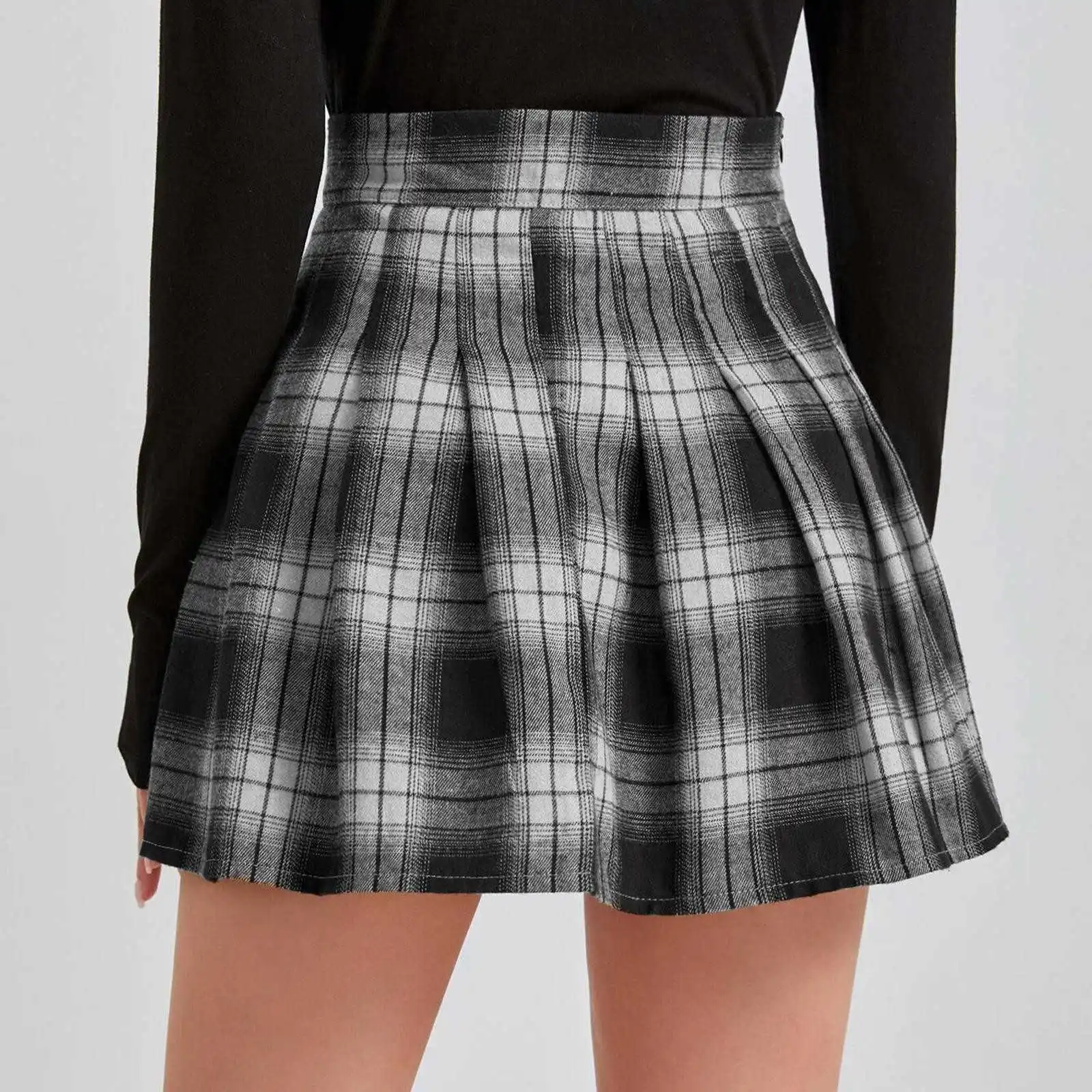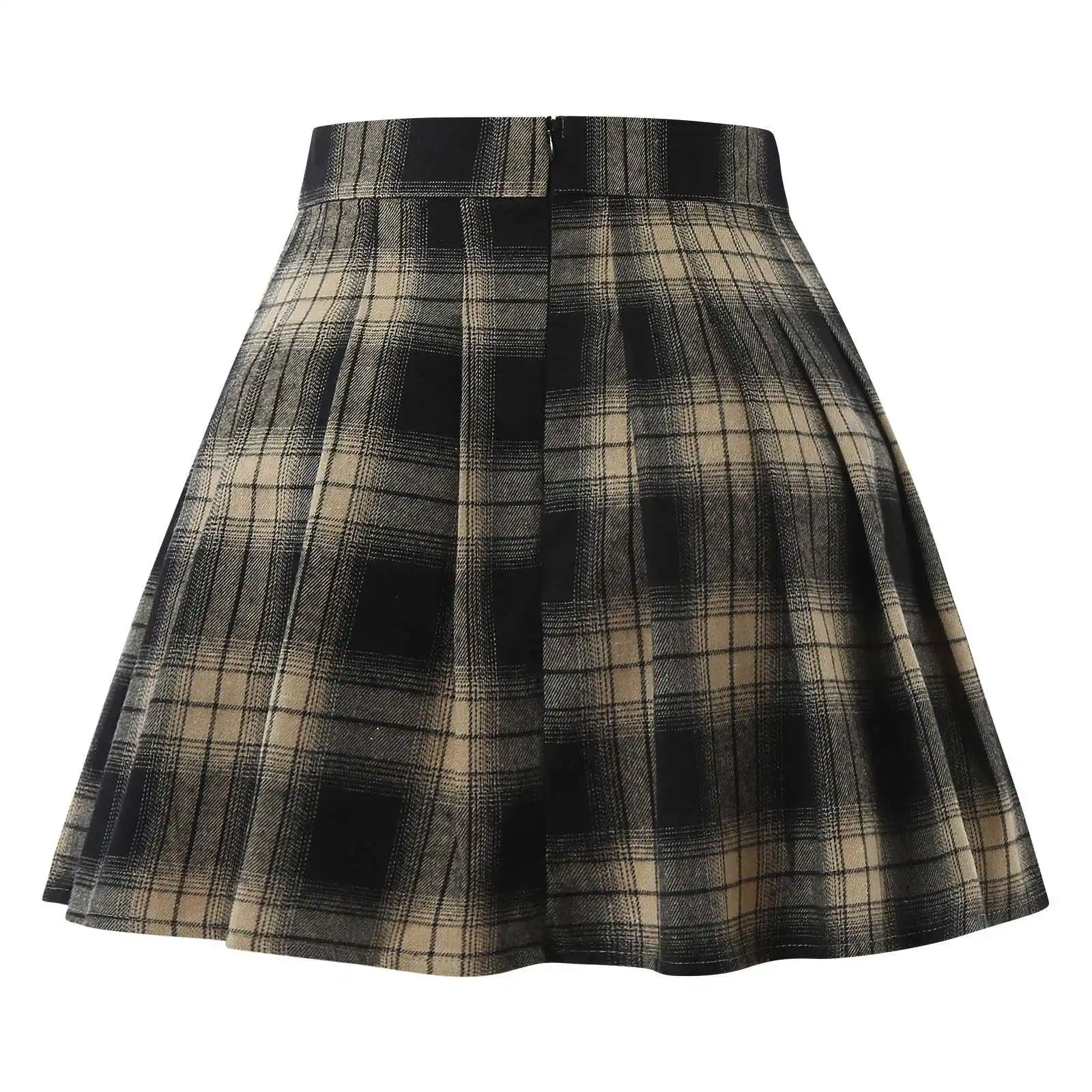 Женская мода Ретро панк клетчатая юбка с принтом короткая юбка на молнии плиссированная мини-юбка