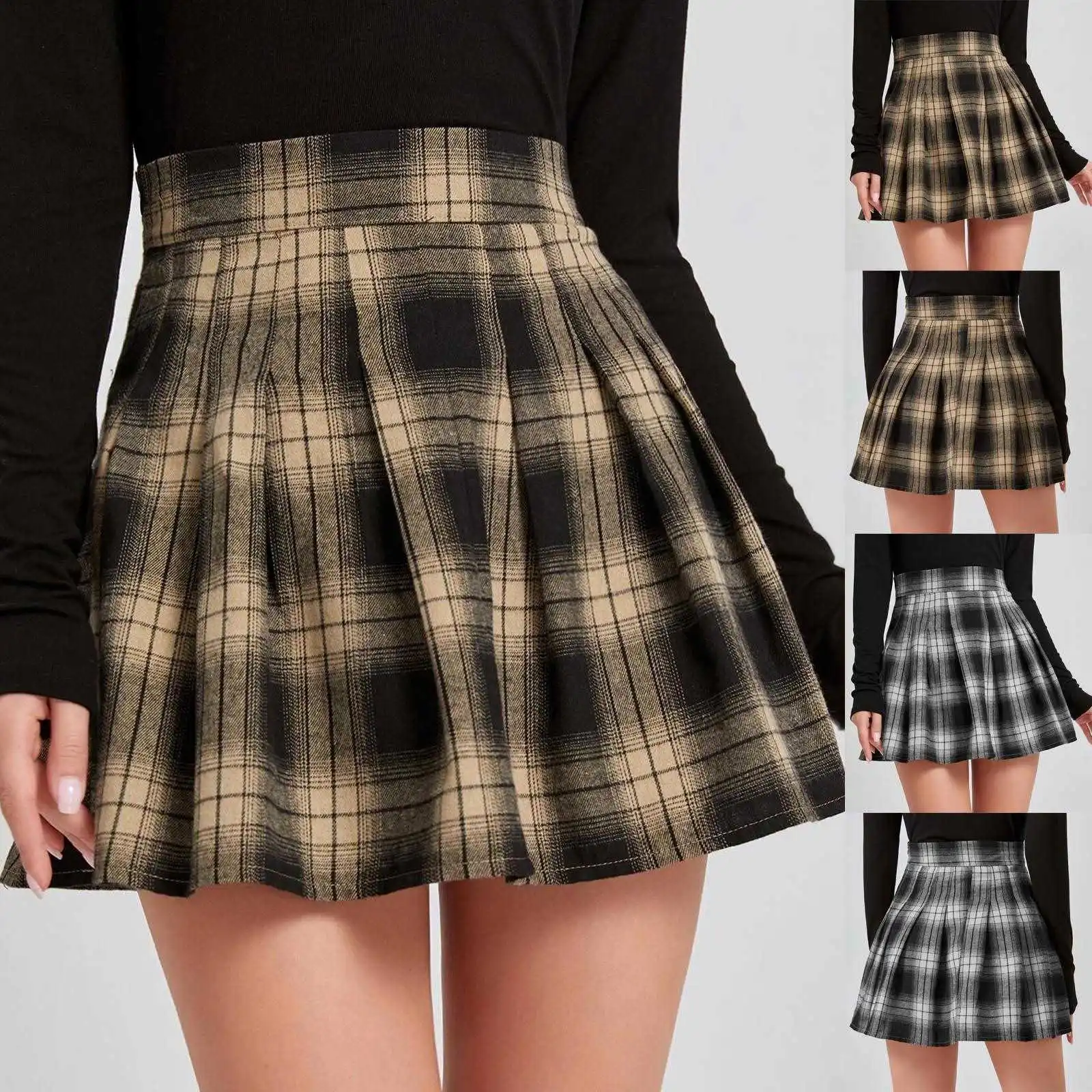 Юбка женская в клетку, на молнии, с завышенной талией, в стиле ретр...