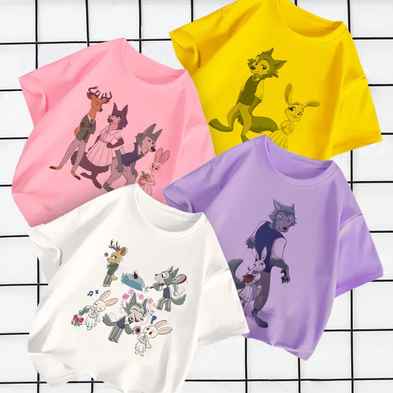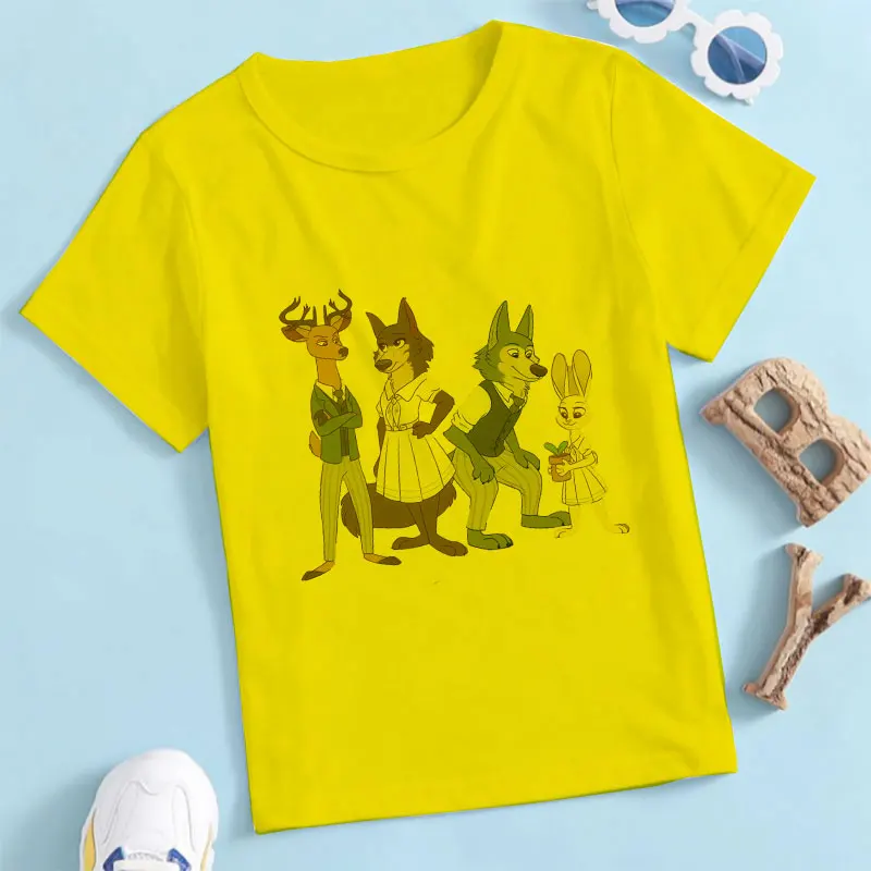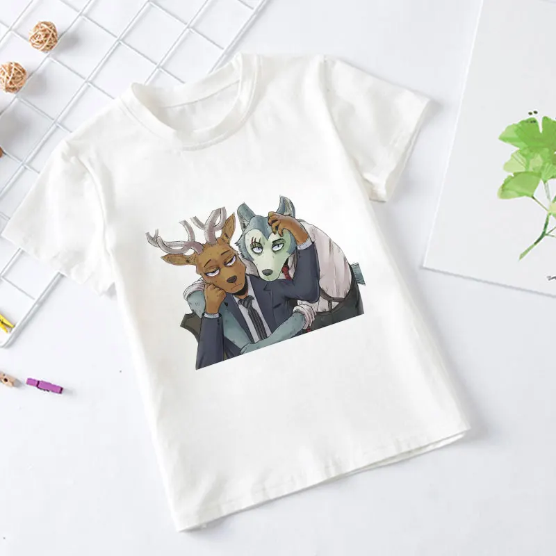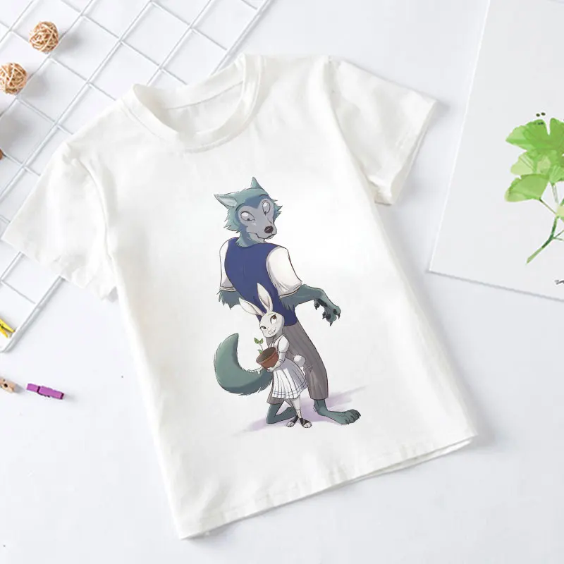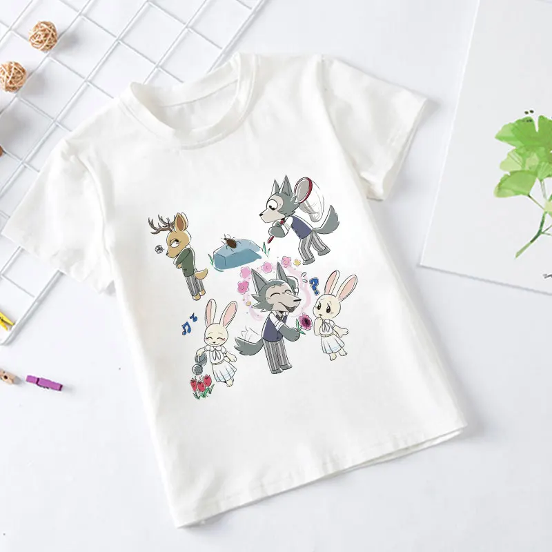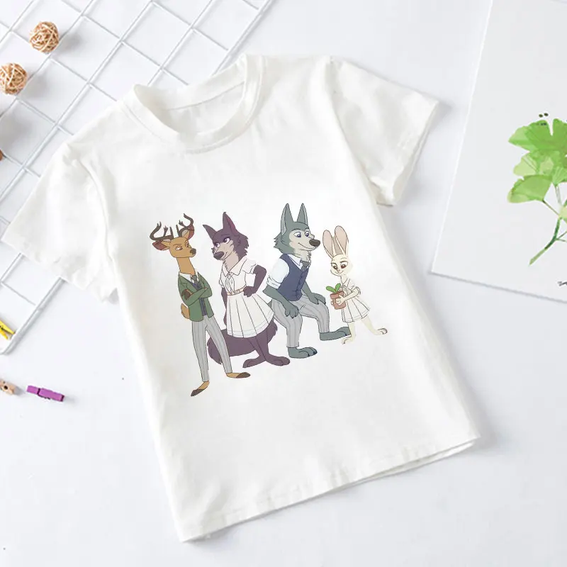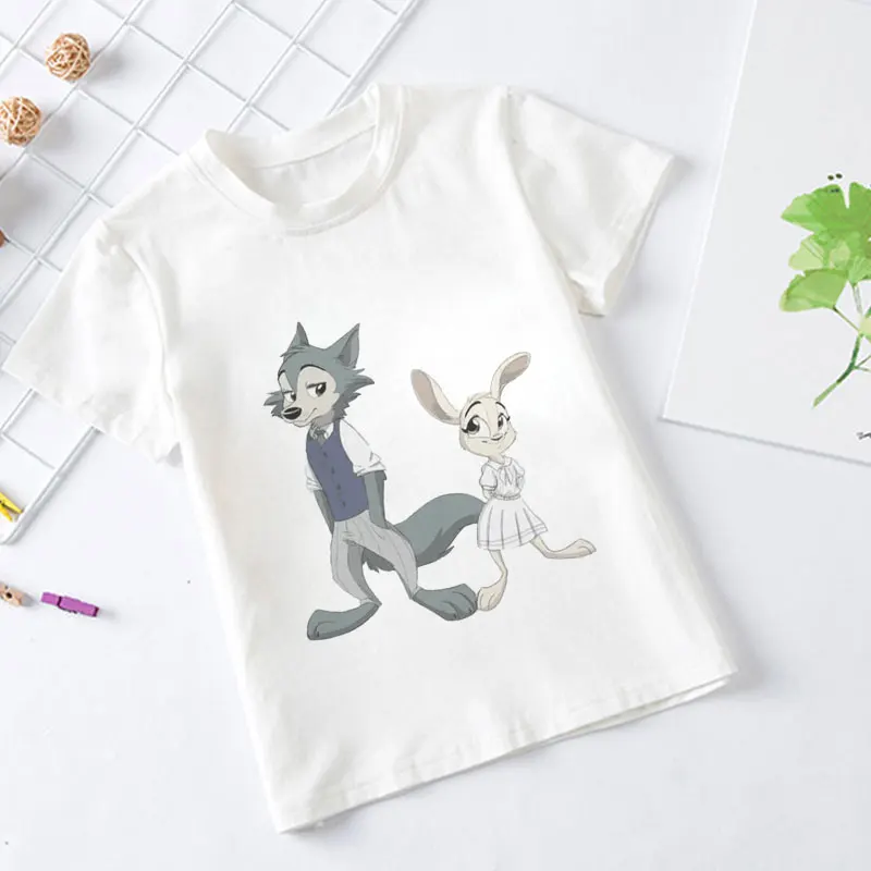 2021, летние, модные, повседневные, из мультфильма, популярная яркая детская одежда с рисунком персонажей аниме животных Рапсодия BEASTARS для детей, для девочек и мальчиков, белая футболка От 2 до 9 лет